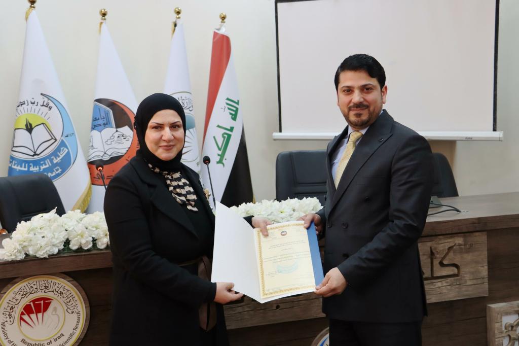 حضرت السيدة عميد كلية العلوم الأستاذ الدكتورة هيام عادل إبراهيم يرافقها السادة معاوني العميد المحاضرة العلمية التي أقامتها كلية التربية للبنات بجامعة الموصل يوم الأحد الموافق 8 كانون الثاني 2023 تحت عنوان ” من نحن ؟ وماذا نريد ؟ ” التي القاها الأستاذ المساعد الدكتور عمر نهاد محمود من جامعة محمد بن زايد للعلوم الانسانية .تلخصت المحاضرة بمن أراد أن يسير نحو النجاح في حياته ، وتحقيق أهدافه ، فلابد من تحديد غايته وعلى قدر هذه الغايات تكون الاستعدادات وتحديد القدرات وزيادة المهارات وتقوية نقاط الضعف والتمسك بنقاط القوة، لسرعة تحقيق تلك الغايات الساميات.و في ختام المحاضرة منحت السيدة عميد الكلية كتاب شكر وتقدير للدكتور عمر نهاد لجهوده المبذولة في القاء المحاضرة .شعبة الإعلام والعلاقات العامةالإثنين 9 كانون الثاني 2023