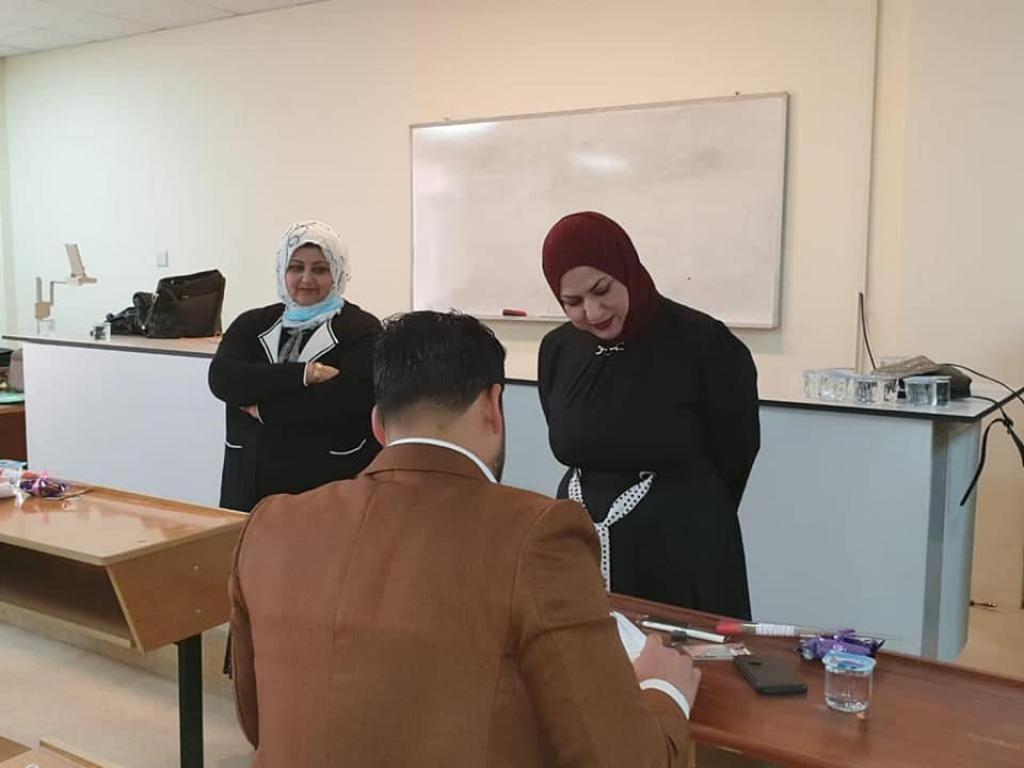 مع انطلاق الإمتحانات الحضورية لطلاب الدراسات العليا للأقسام العلمية لكلية العلوم تفقدت السيدة عميد الكلية الأستاذ المساعد الدكتورة هيام عادل الطائي سير الامتحانات و إنسيابيتها و أثنت على جهود منتسبي الأقسام و اللجان الإمتحانية على سير العملية ضمن الإلتزام بقرارات اللجنة العليا للصحة والسلامة الوطنية و ان هذا الانجاز في ظل الجائحة ما أتى الا كنتاج تعاون الجميع كما اثنت على الطلبة و التزامهم و شجعتهم و أكدت انه لو لم يكونوا من النخبة المتميزة لما وصلوا الى هذه المرحلة من التعليم و تمنت لهم التوفيق والنجاح في اكمال الإمتحانات