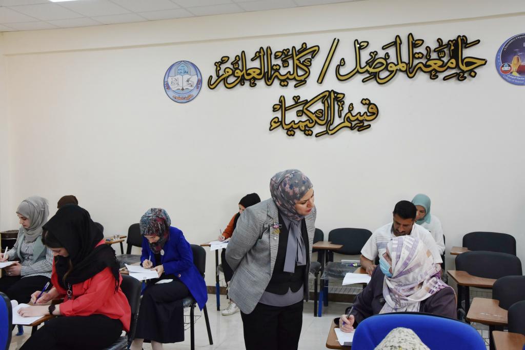 استناداً الى توجيهات وزارة التعليم العالي والبحث العلمي ورئاسة جامعة الموصل بخصوص المتابعة المستمرة لسير العملية الإمتحانية ، تفقدت السيدة عميد الكلية الأستاذ الدكتورة هيام عادل ابراهيم يرافقها السادة معاوني العميد امتحانات الطلبة في قسم الكيمياء ، وقد اطلعت خلال تجوالها في القاعات الإمتحانية على طبيعة ومستوى الأسئلة من خلال مداخلتها مع الطلبة ، كما أكدت على ضرورة الالتزام بالقوانين والتعليمات الخاصة بالامتحانات لضمان نجاحها.متمنية في الوقت نفسه للجميع التوفيق والنجاح والصحة والسلامة.