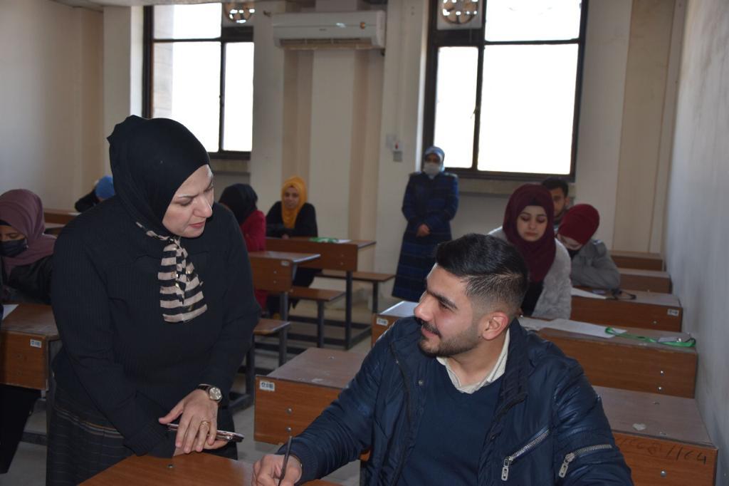 استناداً الى توجيهات وزارة التعليم العالي والبحث العلمي ورئاسة جامعة الموصل بخصوص المتابعة المستمرة لسير الإمتحانات في أقسام الكلية.تفقدت السيدة عميد الكلية الأستاذ المساعد الدكتورة هيام عادل الطائي يرافقها السيد المعاون العلمي الدكتور محمد صبحي حميد سير العملية الإمتحانية لطلبة الدراسات الأولية ( الامتحان العملي النهائي للفصل الدراسي الأول ) في أقسام الكلية صباح يوم الأحد الموافق 23 كانون الأول 2022 ، وتحدثت خلال جولتها مع السادة رؤساء الأقسام عن الاجراءات الصحية المتخذة مع الاطلاع على المعوقات التي تواجههم بغية ايجاد السبل المناسبة لتذليلها و أثنت على الجهود المبذولة للسادة رؤساء الأقسام و اللجان الإمتحانية من أجل إنجاح سير الإمتحانات .