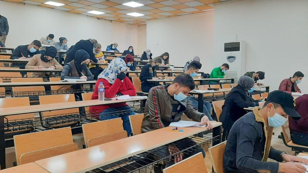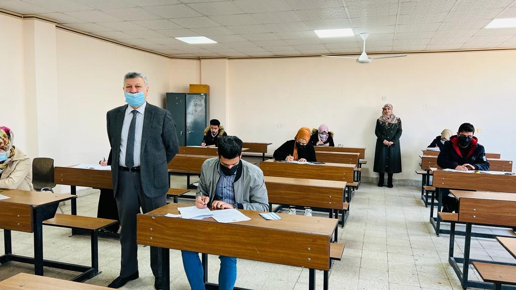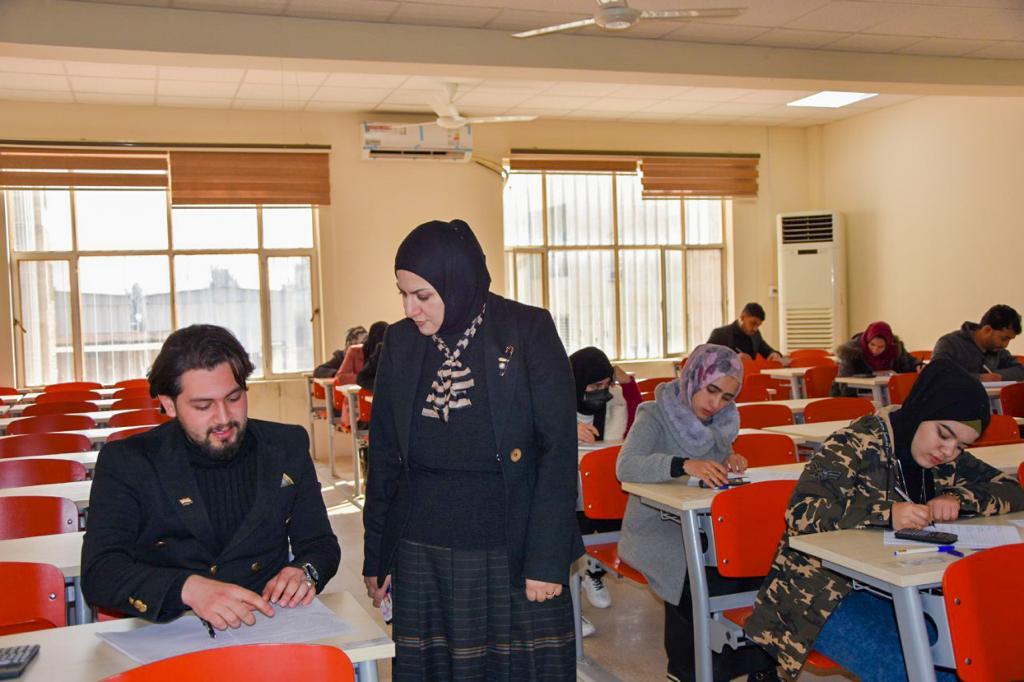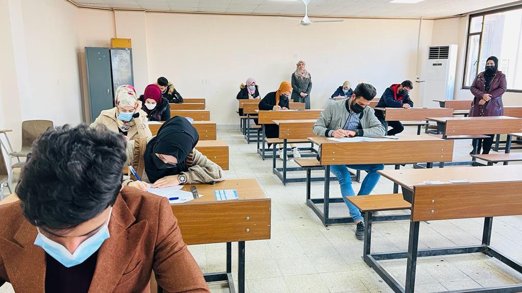 استناداً الى توجيهات السيد رئيس جامعة الموصل الأستاذ الدكتور قصي كمال الدين الأحمدي المحترم بخصوص المتابعة المستمرة لسير العملية الإمتحانية .تفقدت السيدة عميد الكلية الأستاذ المساعد الدكتورة هيام عادل الطائي المحترمة يوم الإثنين الموافق 31 كانون الثاني 2022 الإمتحانات الحضورية لطلبة الدراسات الأولية ( الكورس الأول ) للعام الدراسي 2021 – 2022 ، حيث تجري الإمتحانات في ظل إجراءات تنظيمية و وقائية مركزةً على تطبيق شروط الوقاية الصحية من خلال التعقيم المسبق و المستمر للقاعات الامتحانية و الإلتزام بالتباعد الإجتماعي و ارتداء الكمامات .سائلين الله التوفيق والنجاح لطلبتنا الأعزاء
