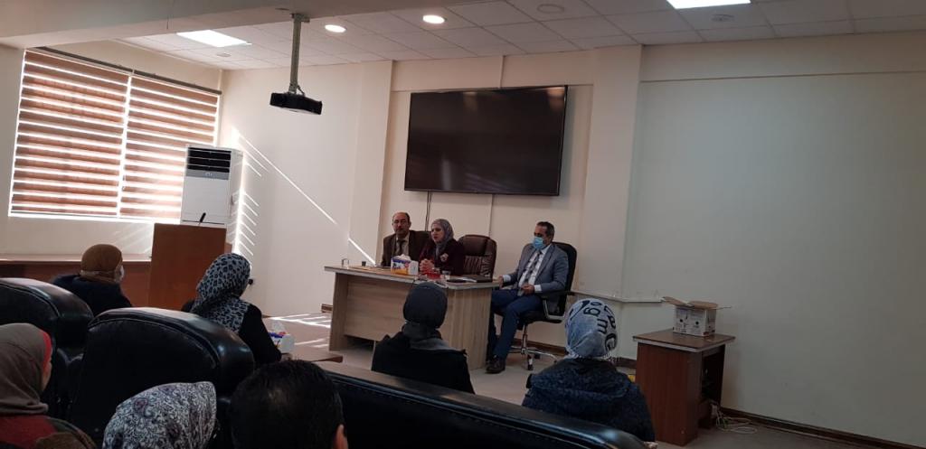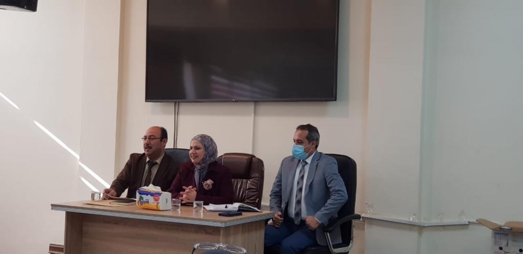 ترأست السيدة عميد الكلية الأستاذ المساعد الدكتورة هيام عادل إبراهيم المحترمة يوم الاربعاء الموافق 15 كانون الأول 2021 اجتماعاً للهيئة التدريسية في قسم الكيمياء بحضور السيد رئيس القسم الأستاذ المساعد الدكتور سالم جاسم محمد و السيد مقرر القسم الدكتور عزام أحمد محمد .تمت مناقشة سير العملية التدريسية لمواد النظري والعملي ومواضيع القسم الإدارية والعلمية كذلك استعدادات القسم لإجراء إمتحانات نهاية الفصل الدراسي الأول لطلبة الدراسات العليا والأولية ، حيث استمعت السيدة العميد إلى مشاكل الأساتذة ووعدت بتذليل كل العقبات التي تقف أمام تقدم القسم من حيث الترقيات العلمية وتوفير الأجهزة لتطوير عملية البحث العلمي وأكدت السيدة العميد على ضرورة التعاون لإنجاح نشاطات الكلية العلمية .