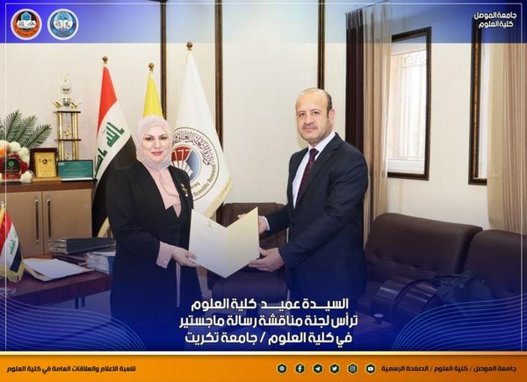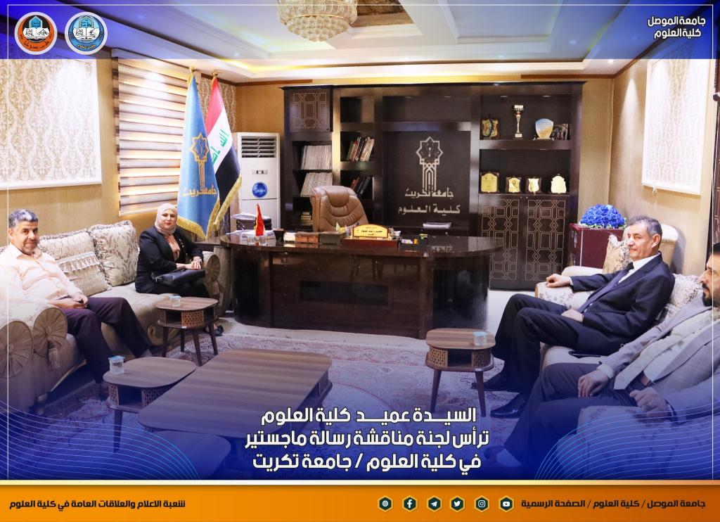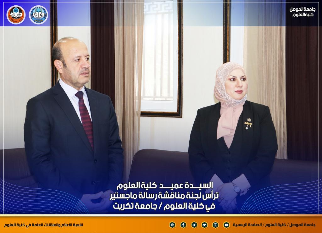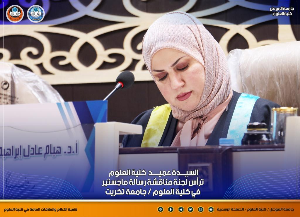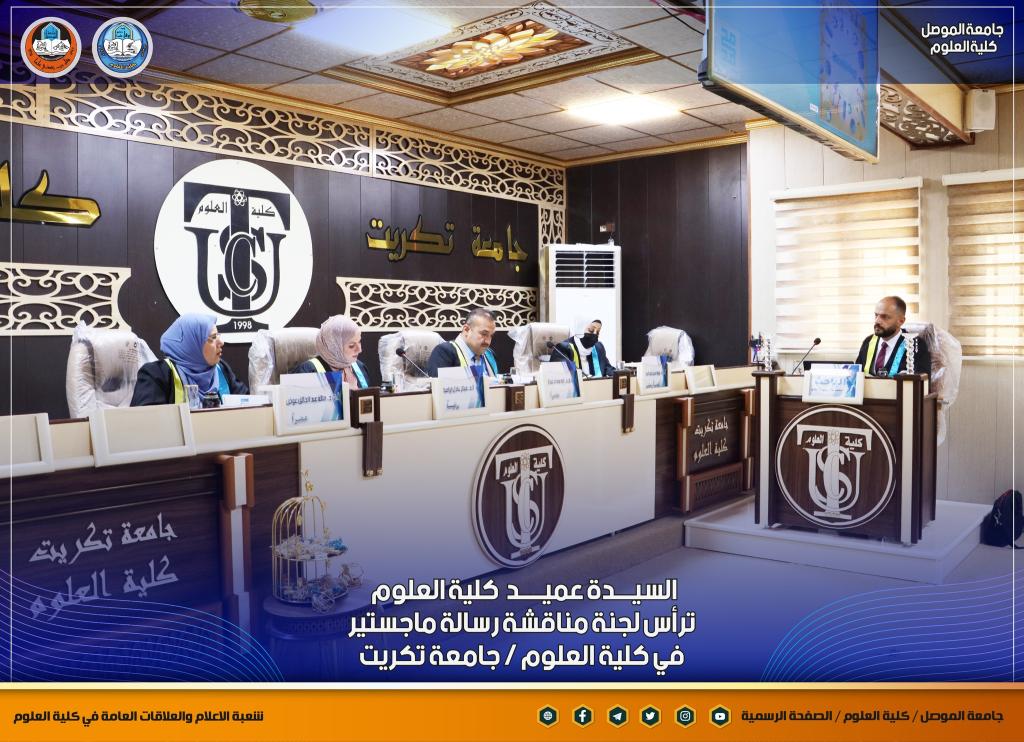 السيدة عميد كلية العلوم تترأس لجنة مناقشة رسالة ماجستير في كلية العلوم/ جامعة تكريت