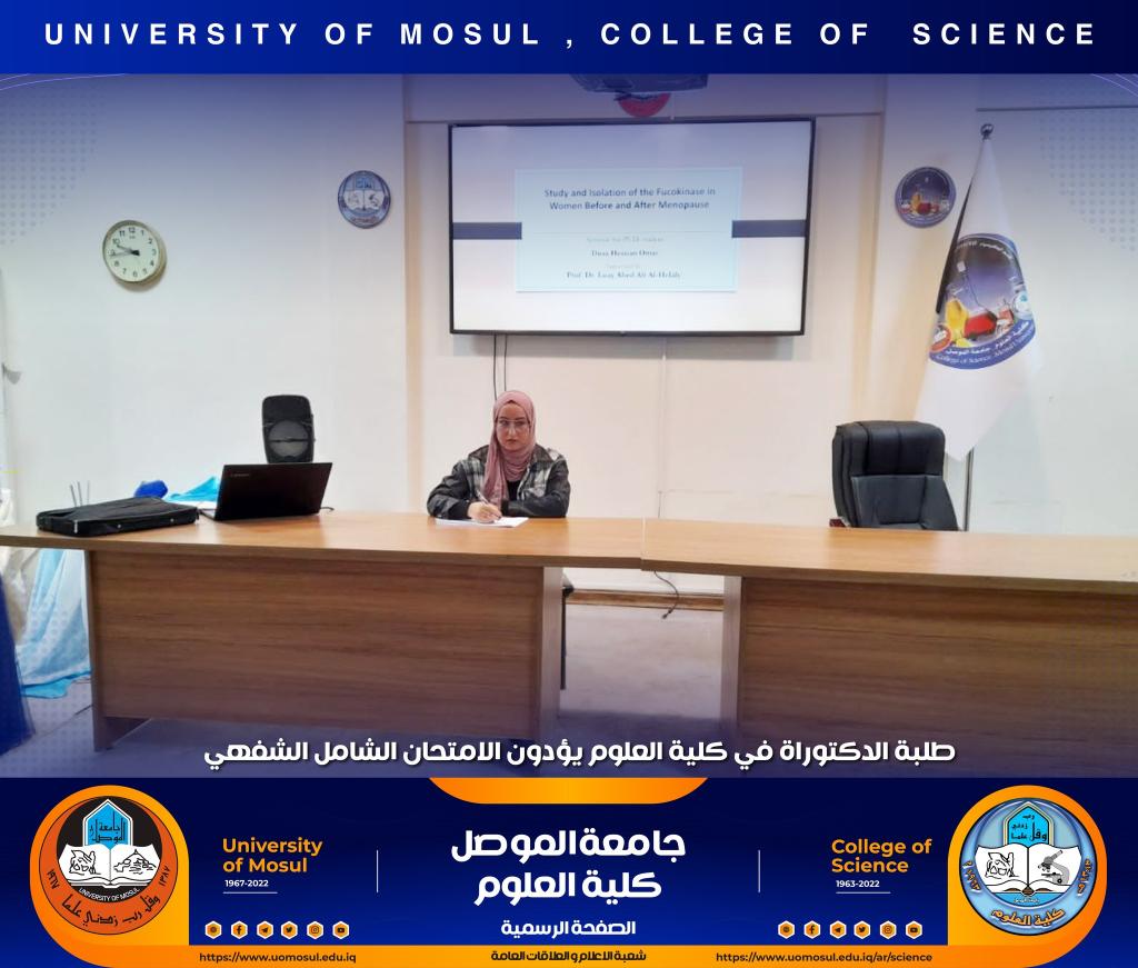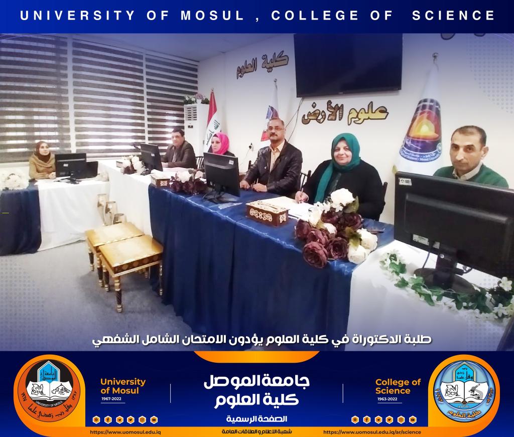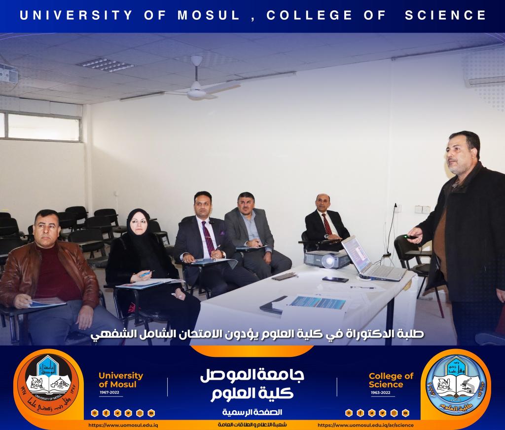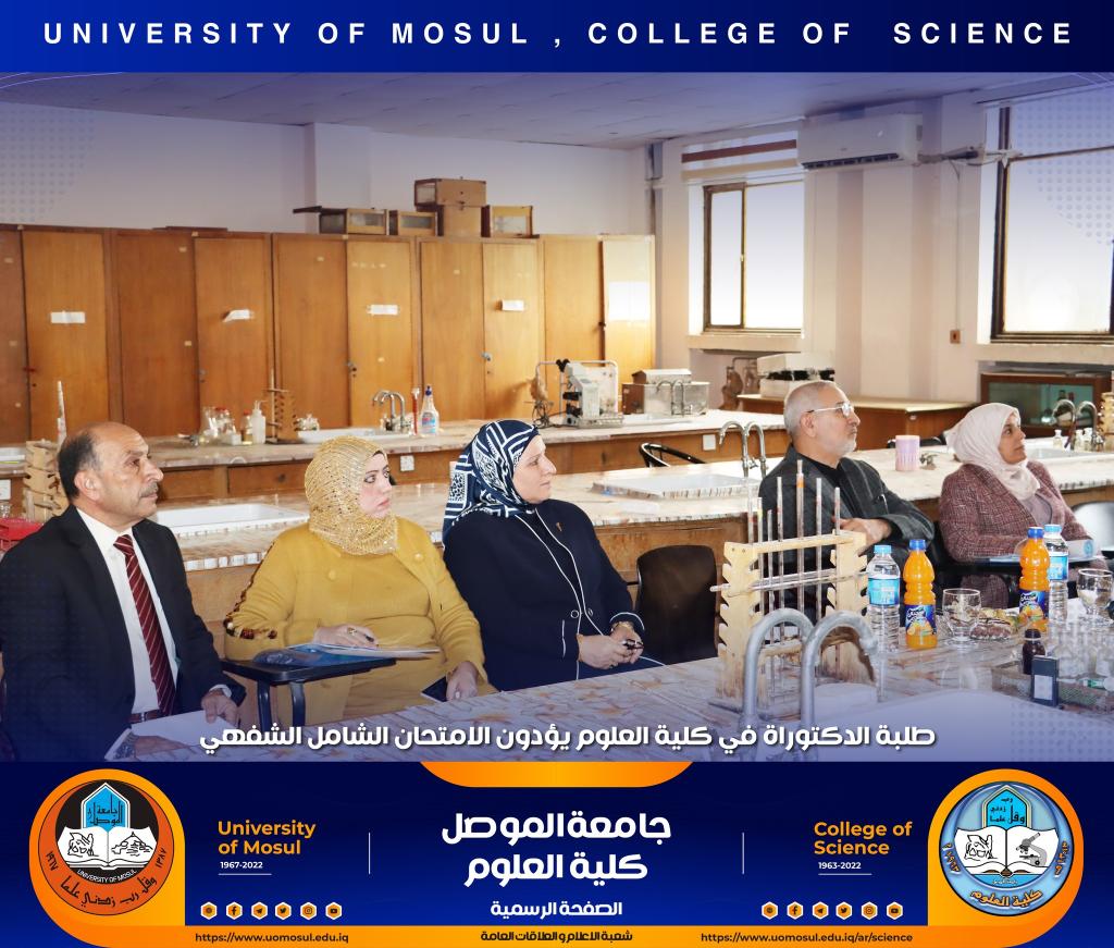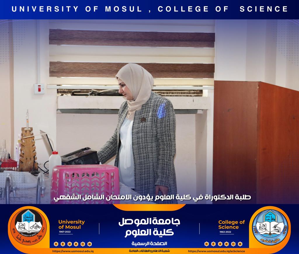 تفقدت السيدة عميد الكلية الأستاذ الدكتورة هيام عادل إبراهيم سير عملية الامتحان الشفهي لطلبة الدكتوراه الذي انطلق صباح هذا اليوم الموافق للأول من كانون الأول 2022 في كل من أقسام الكيمياء و علوم الحياة و الفيزياء و علوم الأرض ، حيث أبدت دعمها الكامل لطلبتنا الاعزاء ، مثنية وشاكرة جهود اللجان المشاركة فيه من أقسام الكلية و كليات الجامعة و الاستعدادات والتحضيرات اللوجستية لأقسام الكلية قبيل الامتحان التي أدت الى سيره بصورة سلسة.تمنياتنا لطلبتنا التوفيق الدائمشعبة الإعلام و العلاقات العامةالخميس 1 كانون الأول 2022