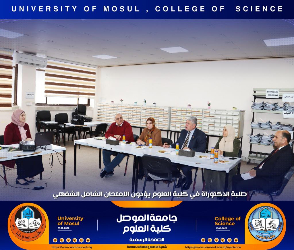 السيدة عميد كلية العلوم تتفقد سير الامتحان الشامل الشفهي لطلبة الدكتوراه في الكلية