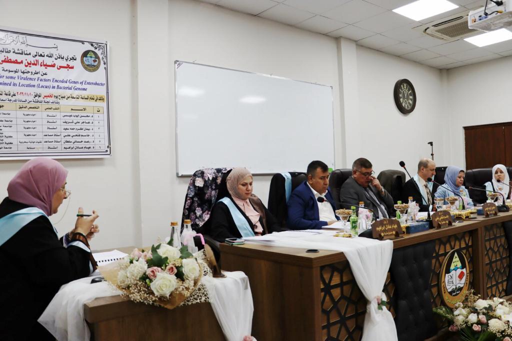 شاركت السيدة عميد كلية العلوم الأستاذ الدكتورة هيام عادل إبراهيم بالإشراف على طالبة الدكتوراه ( سجى ضياء الدين مصطفى الرضواني ) في قسم علوم الحياة / كلية التربية للعلوم الصرفة عن الاطروحة الموسومة :”Molecular and Genetic Study for some Virulence Factors Encoded Genes of Enterobacter Cloacae and Determined its Location (Locus) in Bacterial Genome”ترأس لجنة المناقشة التي جرت أحداثها صباح هذا اليوم الخميس الموافق 10 تشرين الثاني 2022، الأستاذ الدكتور محسن أيوب عيسى من قسم علوم الحياة في كليتنا وشارك بعضويتها الأستاذ الدكتورة هاجر علي شريف من جامعة كركوك والأستاذ الدكتورة بيمان أكرم حمه سعيد من جامعة صلاح الدين أربيل والأستاذ المساعد الدكتور جاسم فتحي علي والأستاذ المساعد الدكتور رعد حساني سلطان من كلية التربية للعلوم الصرفة.و تضمنت المناقشة التوصية بمنح الطالبة درجة الدكتوراه و بتقدير امتياز.الف مباركشعبة الإعلام و العلاقات العامةالخميس 10 تشرين الثاني 2022