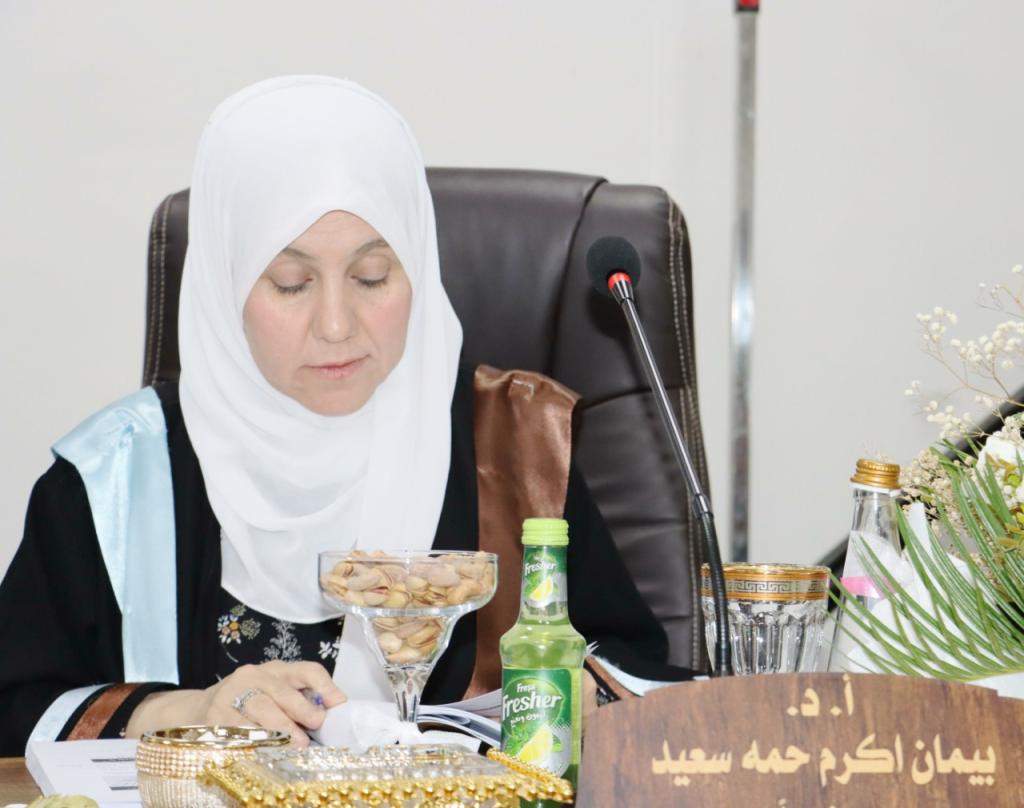 السيدة عميد كلية العلوم عضواً ومشرفاً في مناقشة اطروحة دكتوراه في كلية التربية للعلوم الصرفة