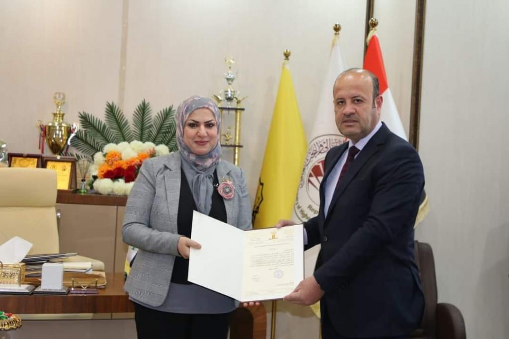 السيدة عميد كلية العلوم عضواَ في لجنة مناقشة رسالة ماجستير من جامعة تكريت