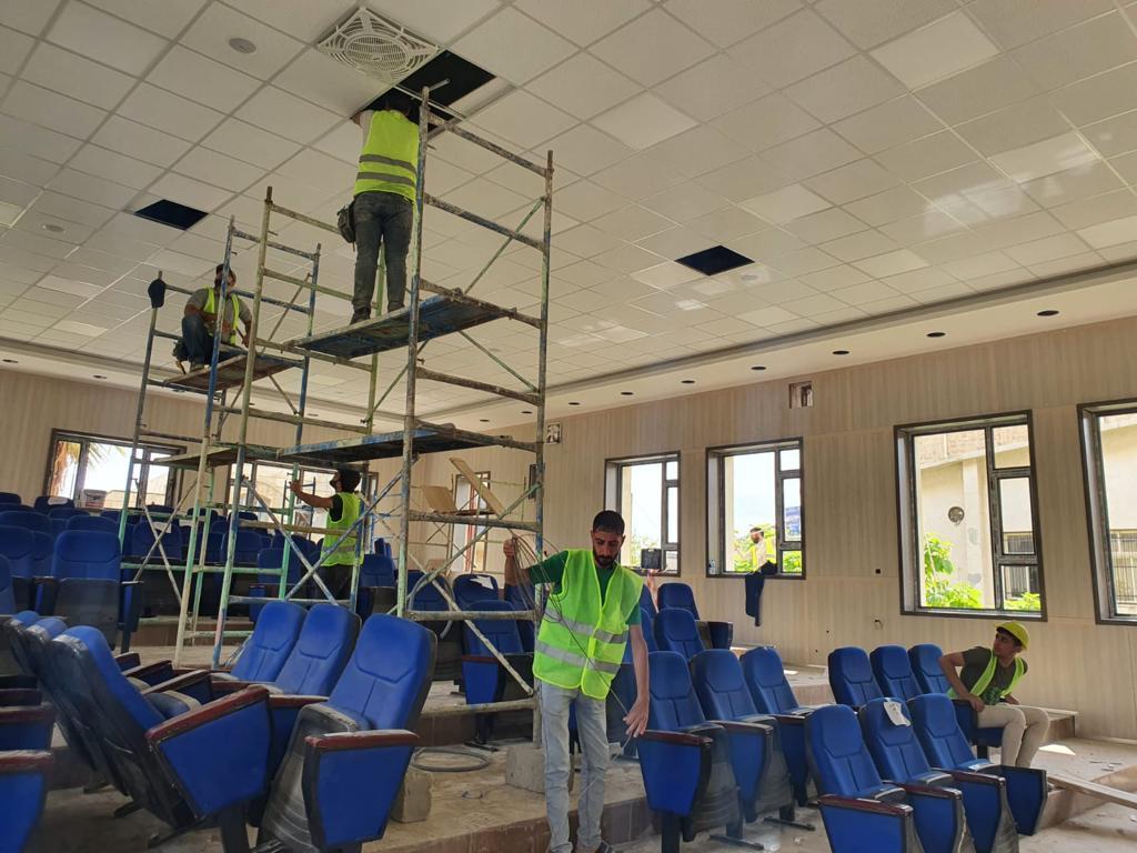 السيدة عميد كلية تتفقد سير عملية اعمار قاعة كلية العلوم المركزية