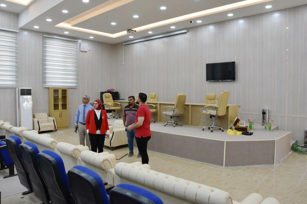 السيدة عميد كلية تتفقد سير عملية اعمار قاعة كلية العلوم المركزية
