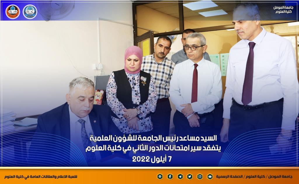 السيد المساعد العلمي لرئيس الجامعة يتفقد سير امتحانات الدور الثاني في كليتنا