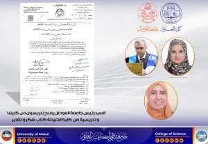 السيد رئيس جامعة الموصل يمنح تدريسيان من كليتنا و تدريسية من كلية الصيدلة كتاب شكر و تقدير