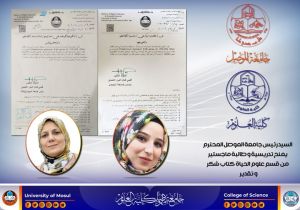 السيد رئيس جامعة الموصل يمنح تدريسية وطالبة ماجستير من قسم علوم الحياة كتاب شكر و تقدير