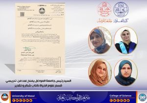 السيد رئيس جامعة الموصل يمنح عدد من تدريسي قسم علوم الحياة كتاب شكر و تقدير
