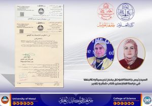 السيد رئيس جامعة الموصل يمنح كتاب شكر و تقدير لتدريسية من قسم علوم الحياة و طالبتها في دراسة الماجستير