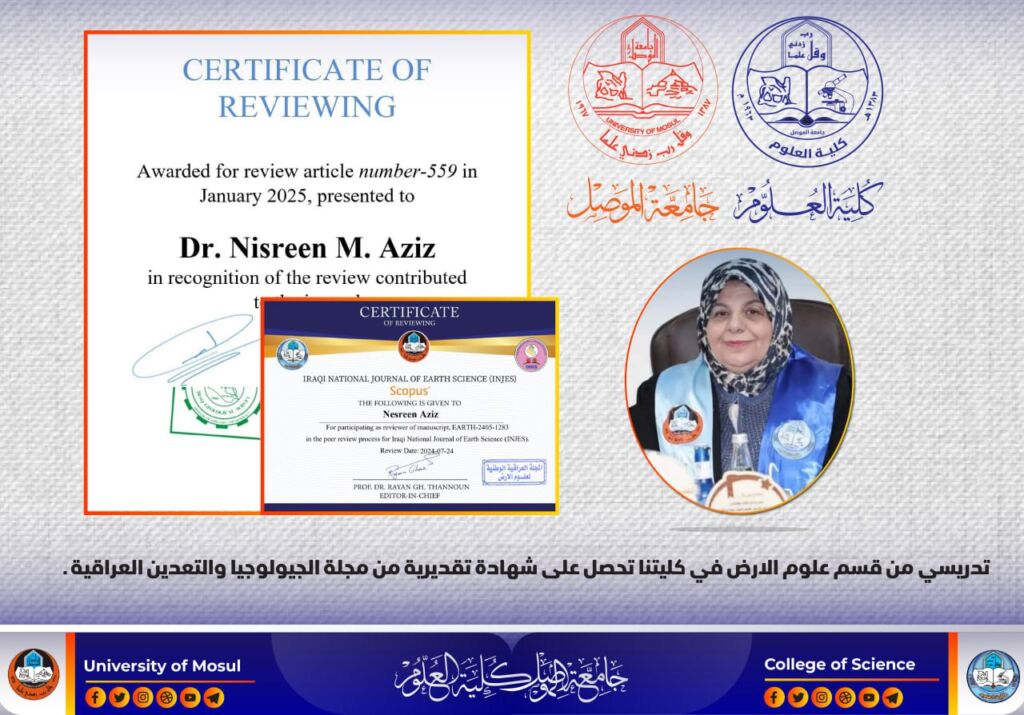 السيد رئيس قسم علوم الحياة في كليتنا يحصل على كتاب شكر وتقدير