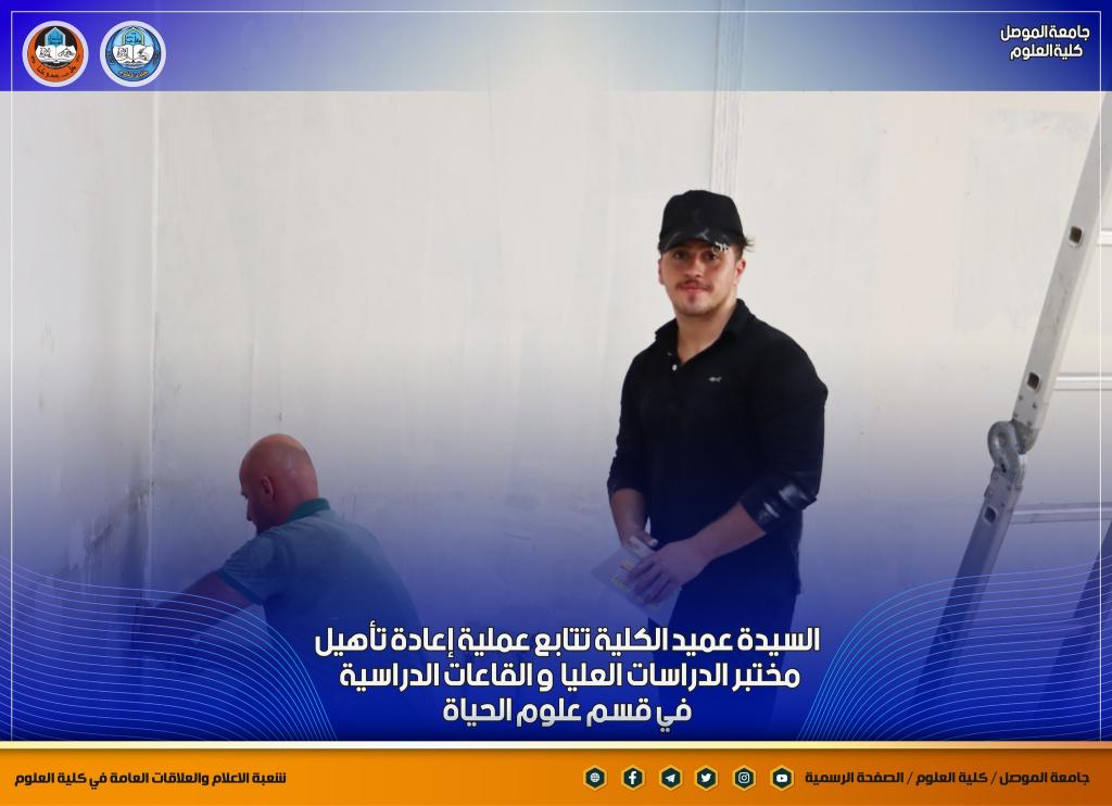 السيد عميد كلية العلوم تتابع سير أعمال تطوير وتأهيل المختبرات العلمية و القاعات الدراسية في الكلية