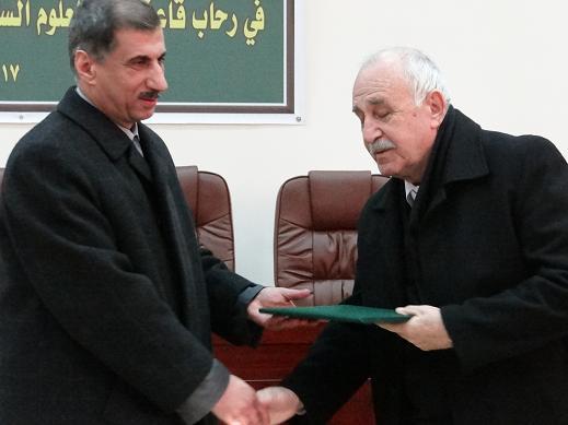 السيد عميد كلية العلوم يقدم درع تذكاري للسيد مساعد رئيس جامعة الموصل للشؤون الإدارية
