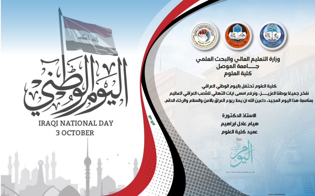 وبهذه المناسبة، تتقدّم كلية العلوم ممثَّلةً بالسيدة العميد بأسمى آيات الشكر والعرفان إلى السيد رئيس جامعة الموصل الأستاذ الدكتور وحيد محمود الإبراهيمي المحترم، على دعمه اللامحدود وتوجيهاته السديدة التي أثمرت هذا التميّز، وأسهمت في تعزيز مكانة الكلية كصرح علمي رائد.