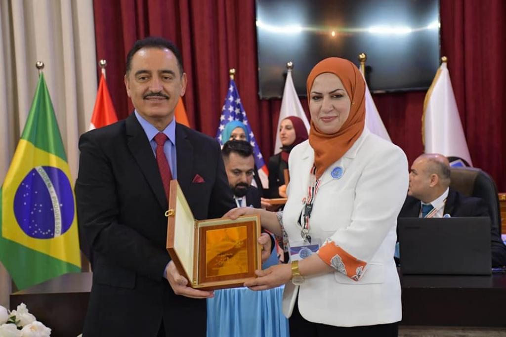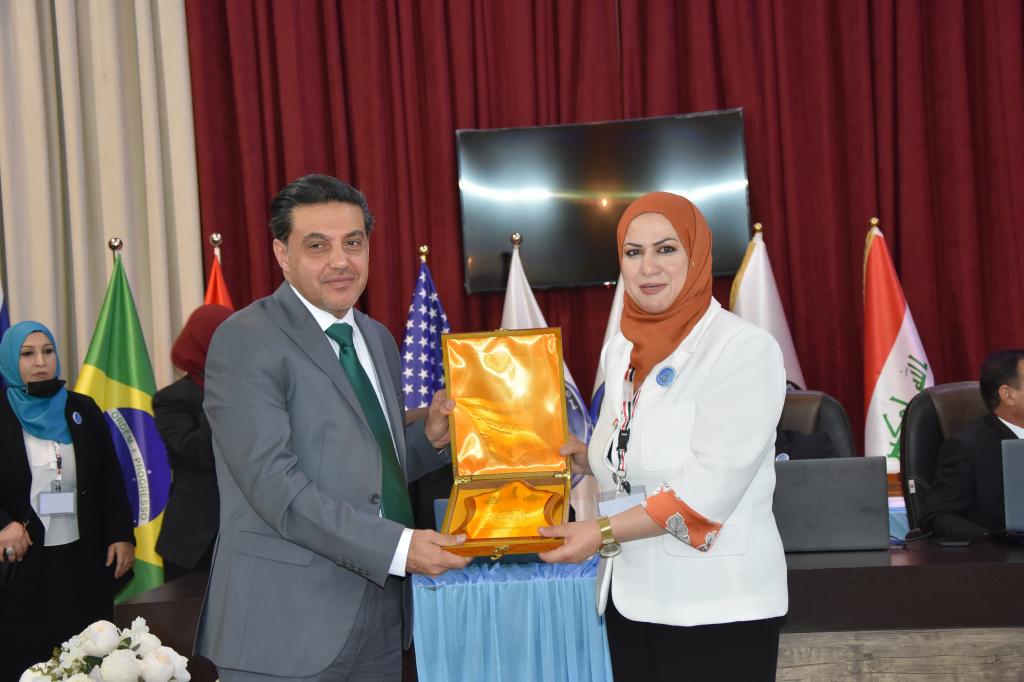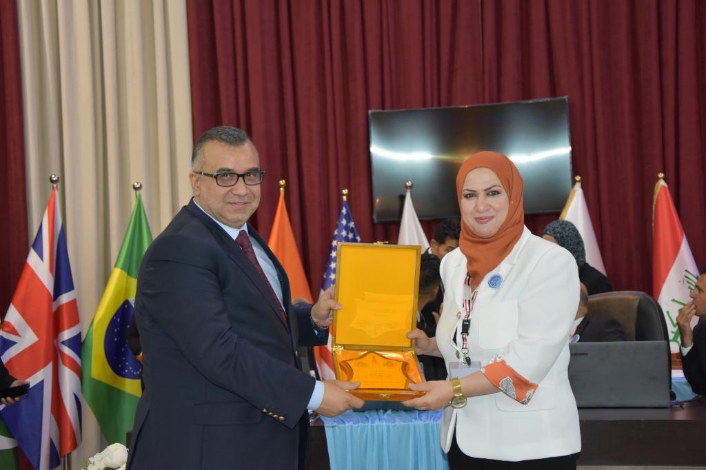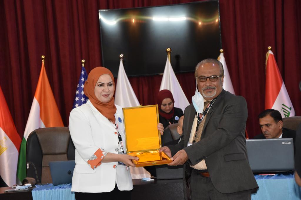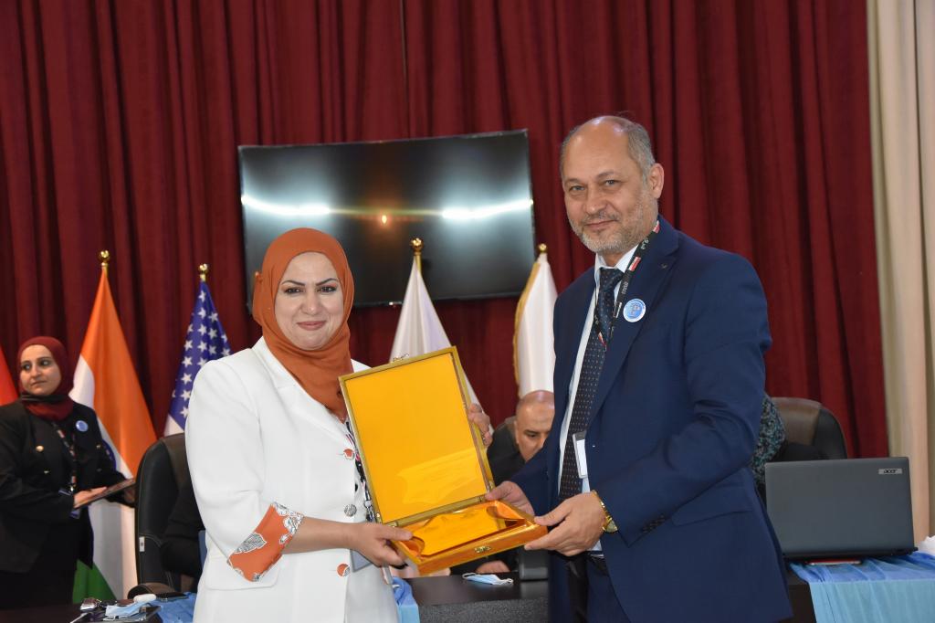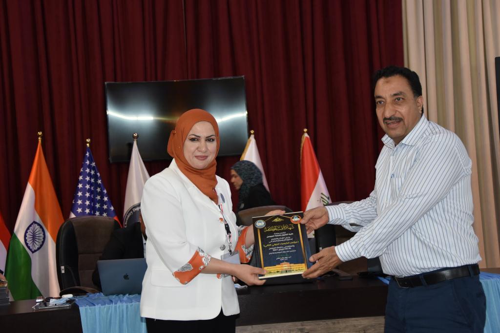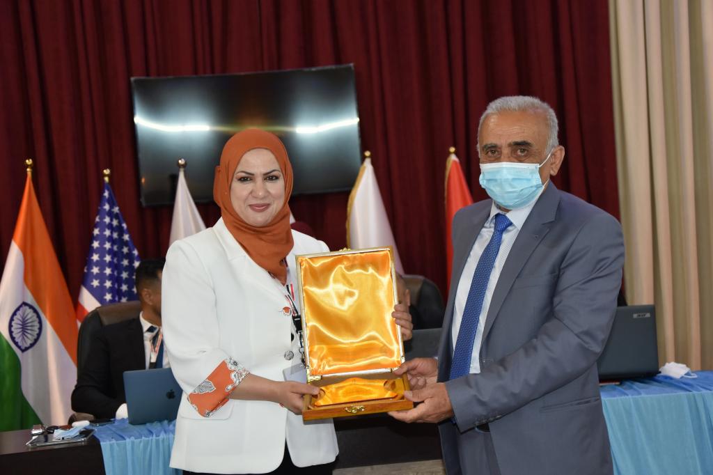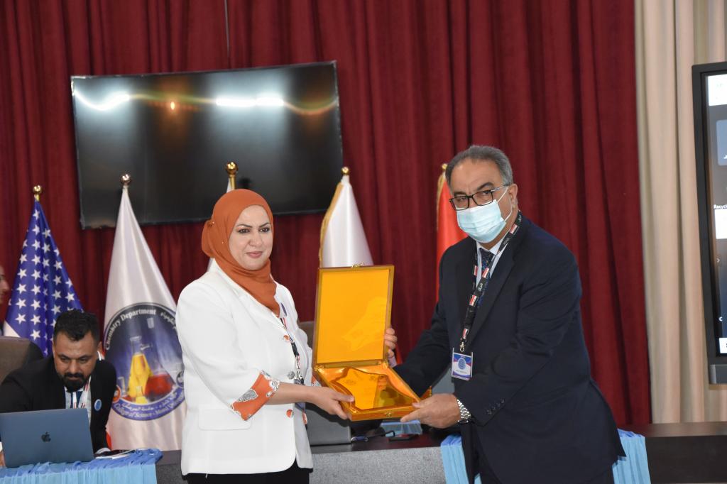 استمراراً لمسيرة التميز والبحث العلمي الذي تنهجه كلية العلوم وبرعاية معالي وزير التعليم العالي والبحث العلمي الأستاذ الدكتور نبيل كاظم عبد الصاحب المحترم واشراف السيد رئيس جامعة الموصل الأستاذ الدكتور قصي كمال الدين الأحمدي المحترم وبرئاسة ومتابعة السيدة عميد كلية العلوم الأستاذ المساعد الدكتورة هيام عادل إبراهيم المحترمة ، وحضور السيدة رئيس الجامعة التقنية الشمالية الأستاذ الدكتورة علياء عباس علي العطار والنائب الفني لمحافظ نينوى الأستاذ حسن ذنون العلاف والسادة عمداء كليات جامعة الموصل المحترمون، وعدد من الشخصيات الأكاديمية والعلمية لجامعات محافظة نينوى والجامعات العراقية والكليات الأهلية والجامعات الأجنبية المشاركة عبر الفضاء الإلكتروني ، انطلقت صباح يوم الأربعاء الموافق للثالث والعشرون من حزيران / 2021 أعمال المؤتمر الدولي الثاني للكيمياء الذي يقيمه قسم الكيمياء في الكلية تحت عنوان ( دور الكيمياء في التنمية والتقدم ) بمشاركة ٩٠ باحثاً يعودون لتسعة دول عربية وأجنبية و٢١ جامعة محلية وعالمية.ومع انطلاق أعمال المؤتمر قدمت السيدة العميد درع المؤتمر للسيد رئيس جامعة الموصل الأستاذ الدكتور قصي كمال الدين الأحمدي المحترم ، والسيدة رئيس الجامعة التقنية الشمالية الأستاذ الدكتورة علياء عباس علي العطار المحترمة ، والنائب الفني لمحافظ نينوى الأستاذ حسن ذنون العلاف المحترم ، و مساعد رئيس جامعة تلعفر والسادة أعضاء مجلس جامعة الموصل الموقر والسيد عميد كلية الحدباء الجامعة ، بدوره سلم السيد رئيس جامعة الموصل درع المؤتمر للسيدة عميد كلية العلوم والسيد رئيس قسم الكيمياء.كما تم خلال حفل الافتتاح تكريم عدد من الباحثين والجهات الداعمة للمؤتمر بهدايا وشهادات تقديرية.