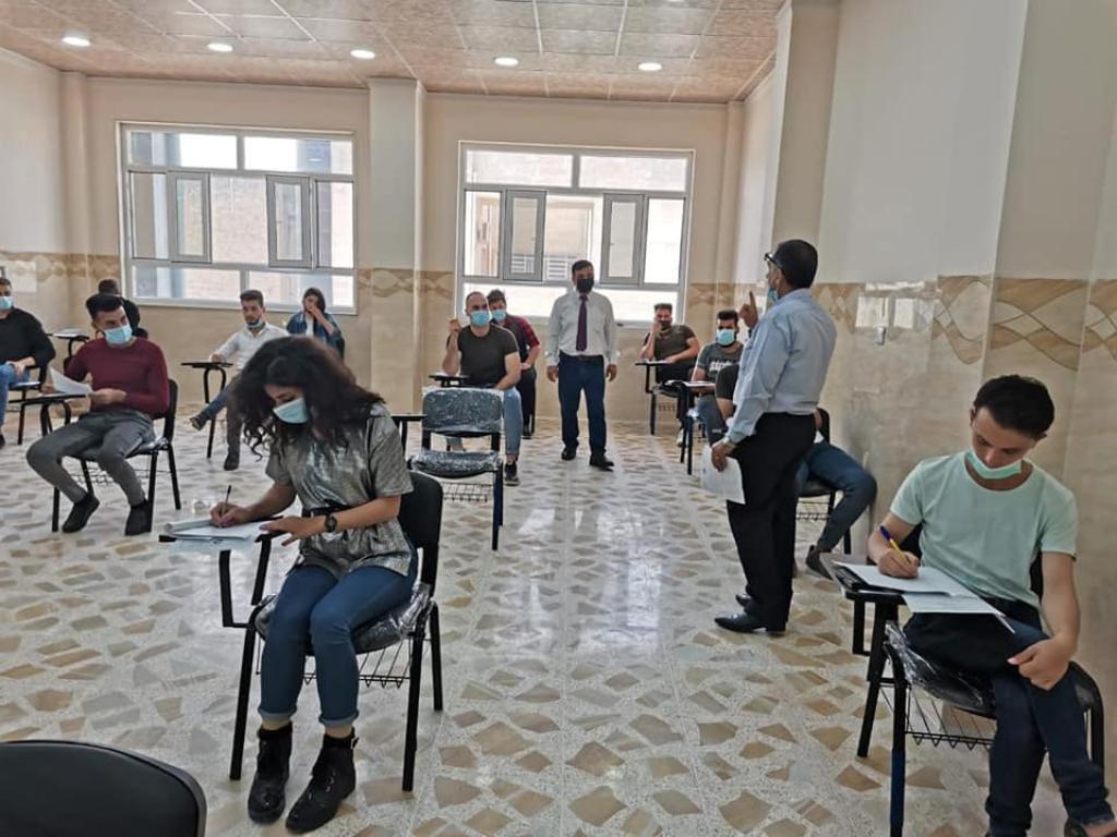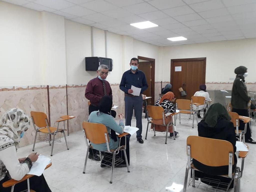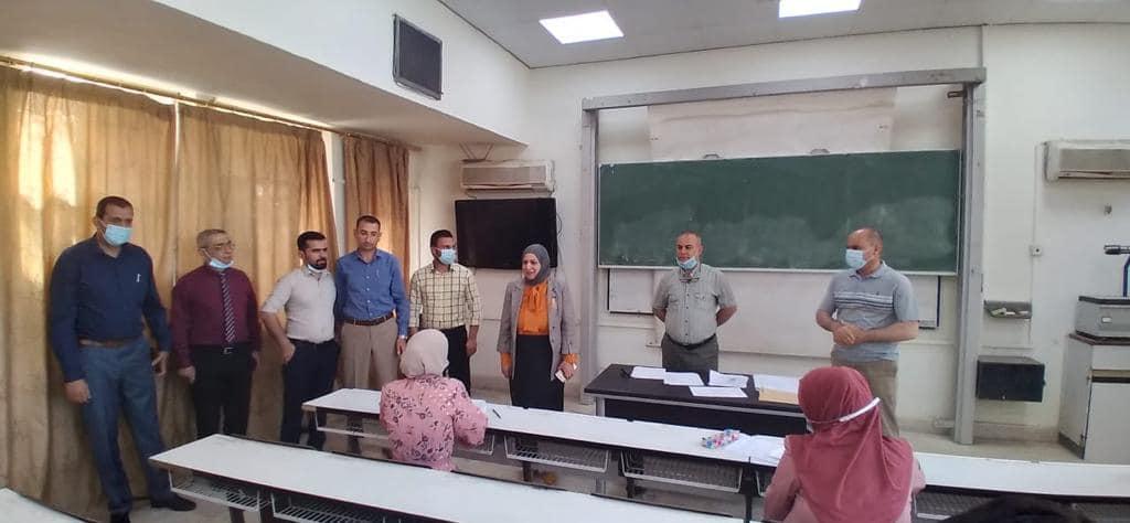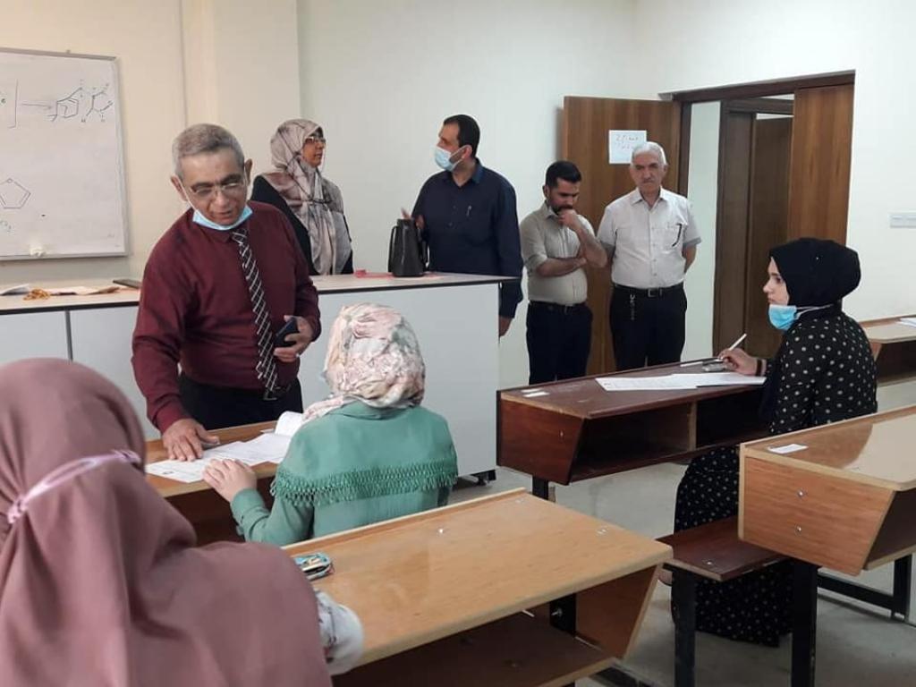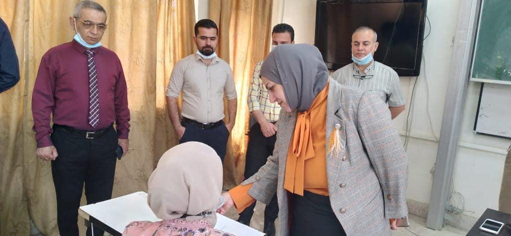 باشراف و متابعة من السيدة عميد كلية العلوم الأستاذ المساعد الدكتورة هيام عادل الطائي ، انطلقت صباح يوم الأربعاء الموافق 21 نيسان 2021 الامتحانات النظرية النهائية للكورس الأول في الكلية وقد تفقدت السيدة العميد يرافقها السادة معاوني العميد و السيد مسؤول شعبة التسجيل سير الامتحانات للأقسام المختلفة تحت إجراءات وقائية اتسمت بالتنظيم العالي حسب التعليمات التي أوصت بها الصحة و وزارة التعليم العالي ورئاسة الجامعة كما تحدثت مع بعض الطلبة للإطلاع على آرائهم و انطباعاتهم حول الإمتحانات ونوعية الأسئلة كما حثتهم على ضرورة المتابعة والاجتهاد لتأدية الامتحانات بتفوق وقد أثنت السيدة العميد على دور الأقسام المختلفة من أجل إنجاح سير الإمتحانات والحفاظ على طلبتنا من هذا الوباء .كل التوفيق لكم طلبتنا الاعزاء