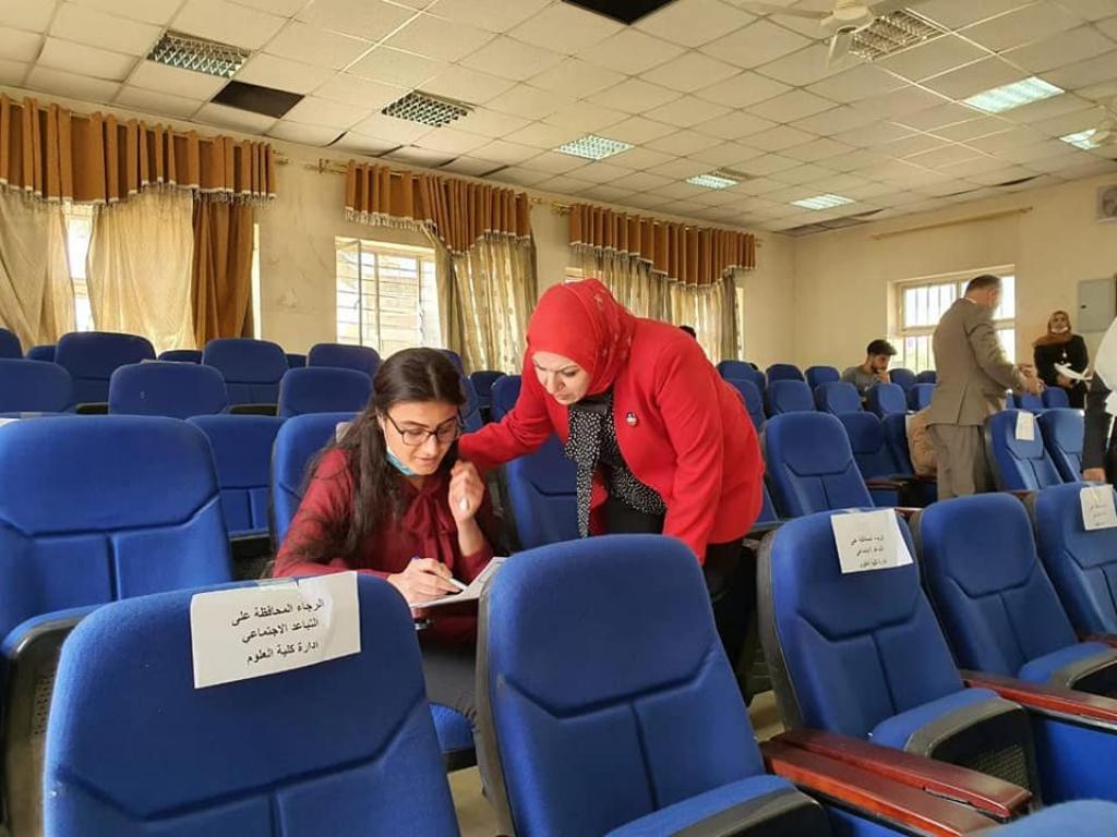 انطلقت صباح يوم الأحد الموافق 11-4-2021 الامتحانات النهائية العملية للفصل الدراسي الأول في أقسام كلية العلوم ، هذا و استناداً الى توجيهات السيد رئيس جامعة الموصل الأستاذ الدكتور قصي كمال الدين الأحمدي تفقدت السيدة العميد الأستاذ المساعد الدكتورة هيام عادل إبراهيم الطائي يرافقها السادة معاوني العميد والسيد مدير التسجيل الأقسام المختلفة للإطلاع على سير العملية الإمتحانية مثنيةً على الإلتزام والحرص العالي للطلبة في أولى أيام امتحانهم حاثة إياهم على بذل كافة الجهود في سبيل إجتياز الامتحانات بتفوق و نجاح وعدم الالتفاف الى الشائعات التي من شأنها أن تؤثر على معنوياتهم ومستقبلهم الدراسي ، مشيدةً بالجهود الجبارة المبذولة من قبل السادة رؤساء الأقسام واللجان الإمتحانية و الكادر التدريسي المراقب للعملية الإمتحانية وسط التزام جليٌّ بالإجراءات الوقائية استناداً الى التوجيهات الوزارية.جدير بالذكر أن اكثر من ١٦٥٠ طالباً موزعين على أكثر من ٣٩ قاعة إمتحانية قد أدوا الامتحان الأول بواقع وجبتين الأولى بدأت عند الساعة التاسعة صباحاً ، أما الثانية فكانت عند الساعة الحادية عشر صباحاً التزاماً بالتعليمات الوزارية بضرورة الإلتزام بالتباعد الإجتماعي اثناء تأدية الامتحانات ، كما وفرت بعض أقسام الكلية نظام مراقبة خاص بالكاميرات للصفوف الإمتحانية لغرض متابعة سير العملية الإمتحانية .أمنياتنا لطلبتنا الأ