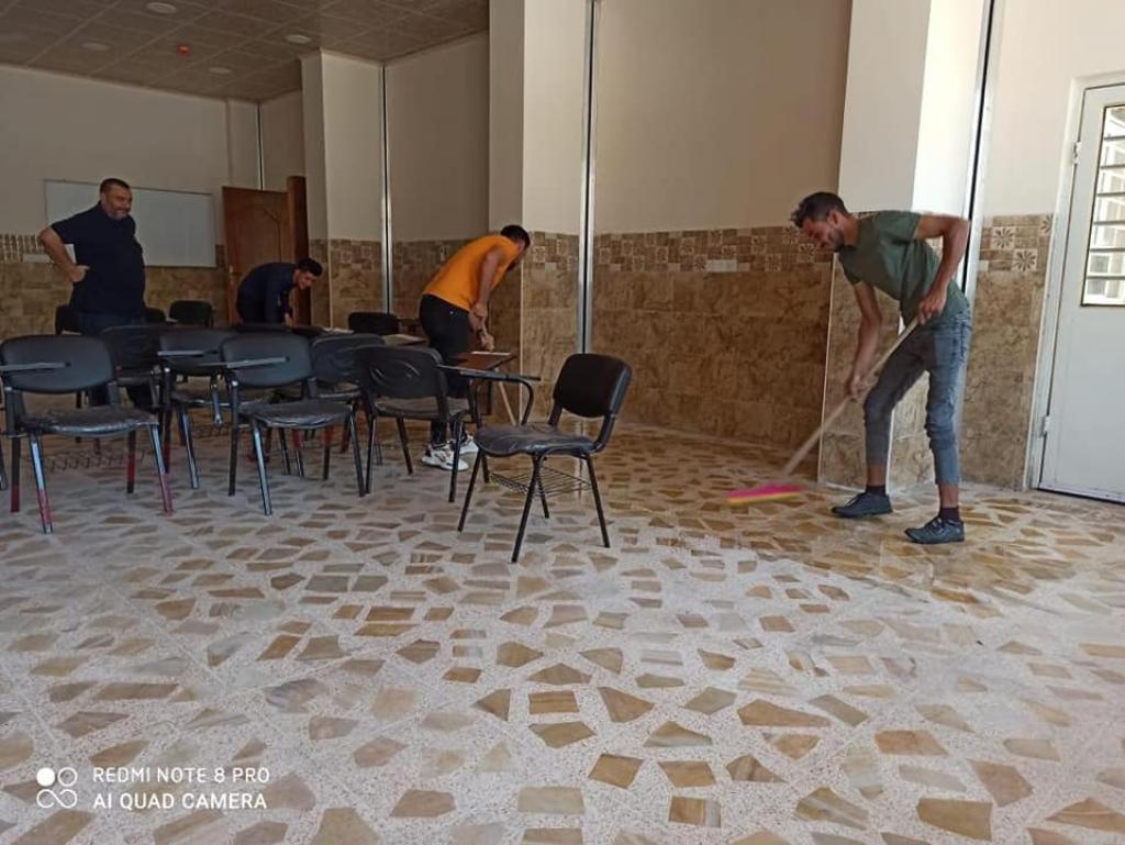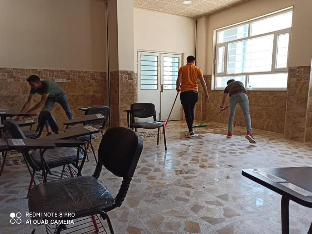 ضمن استعدادات الكلية لاستقبال الطلبة للامتحانات النهائية الحضورية و بتوجيه من السيدة عميد كلية العلوم الأستاذ المساعد الدكتورة هيام عادل الطائي قام قسم الطاقات الجديدة والمتجددة متمثلاً بالسيد رئيس القسم أ. م. د. عاصم أحمد عيسى و يرافقه جمع من أعضاء الكادر التدريسي واللجنة الإمتحانية فضلاً عن مجموعة من طلبة القسم بتنظيف القسم وتعفيره ؛ ليكون جاهزاً لأداء الامتحانات الحضورية .تمنياتنا لطلبتنا الأعزاء بالموفقية والنجاح
