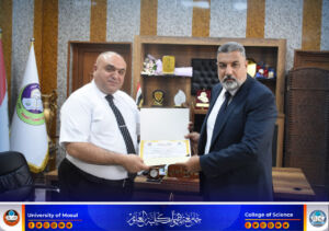 كما قدم السيد عميد كلية العلوم البيئية الاستاذ الدكتور مثنى جاسم الطائي كتاب شكر وتقدير إلى الأستاذ المساعد علاء حسين علي، تقديراً لجهوده العلمية المتميزة في مناقشة الطالب.