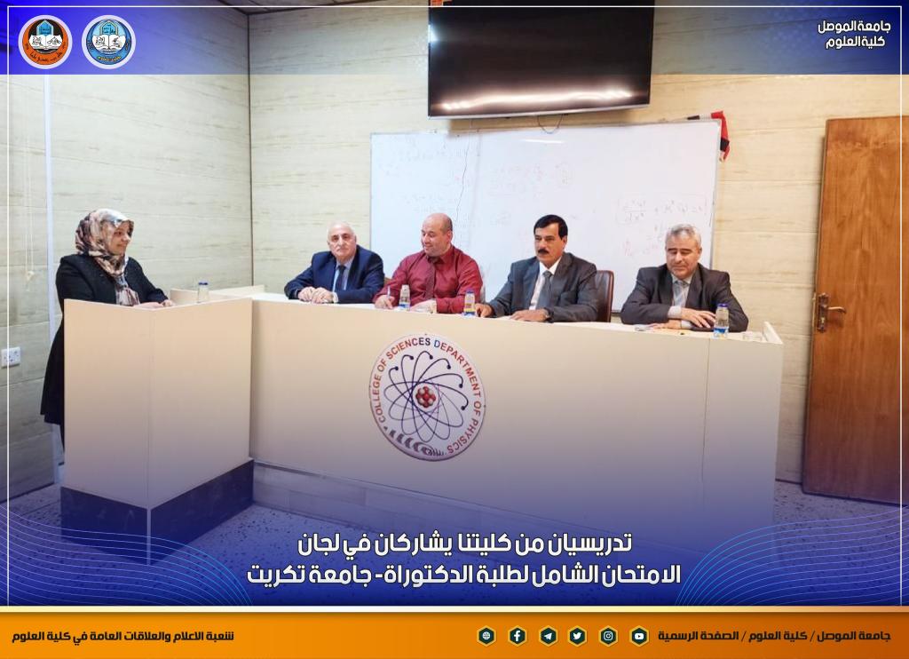 تدريسيان من كليتنا يشاركان في لجان الامتحان الشامل لطلبة الدكتوراه في جامعة تكريت