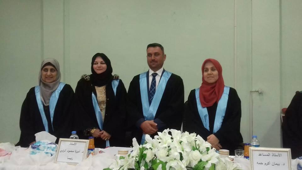 تدريسية من قسم علوم الحياة في كلية العلوم تشارك في لجنة مناقشة طالب ماجستير
