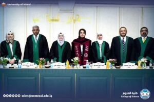 انطلاقًا من حرص كلية العلوم في جامعة الموصل على تعزيز التعاون الأكاديمي والعلمي بين الجامعات العراقية، ترأست الأستاذ الدكتورة زهراء محمد علي أحمد حمودات (قسم الكيمياء – كلية العلوم / جامعة الموصل) لجنة مناقشة أطروحة الدكتوراه للطالبة رغد فارس هادي الخزرجي من كلية الطب / جامعة بابل، والموسومة: