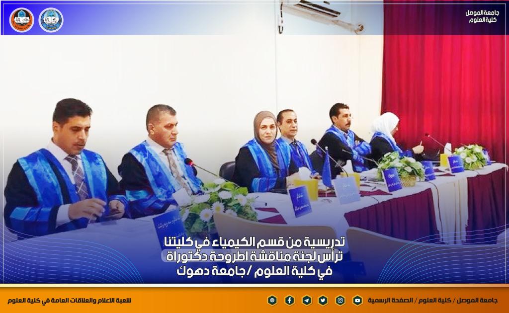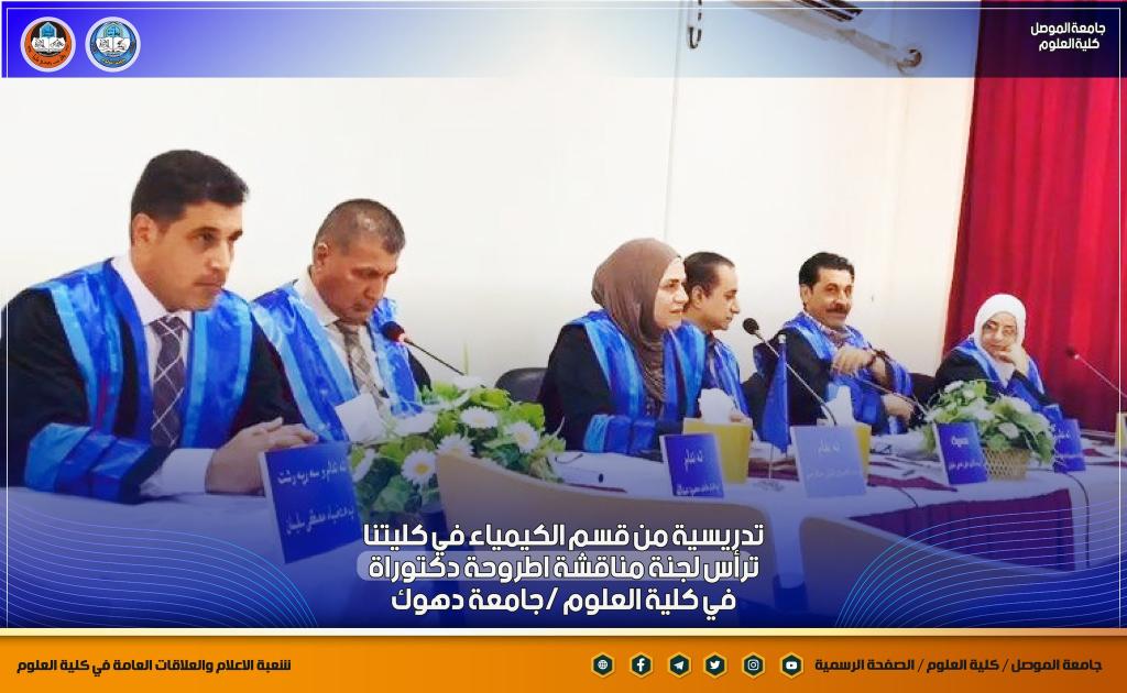 تدريسية من كليتنا ترأس لجنة مناقشة أطروحة دكتوراه في كلية العلوم / جامعة دهوك