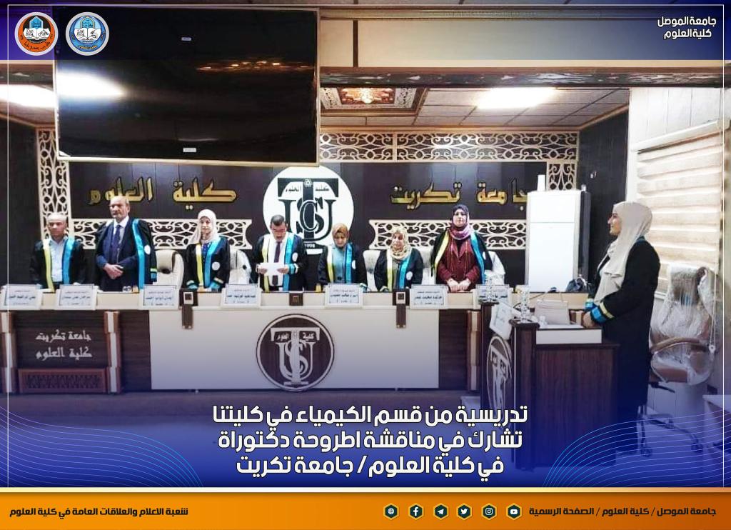 تدريسية من كليتنا تشارك في لجنة مناقشة اطروحة دكتوراه في كلية العلوم / جامعة تكريت