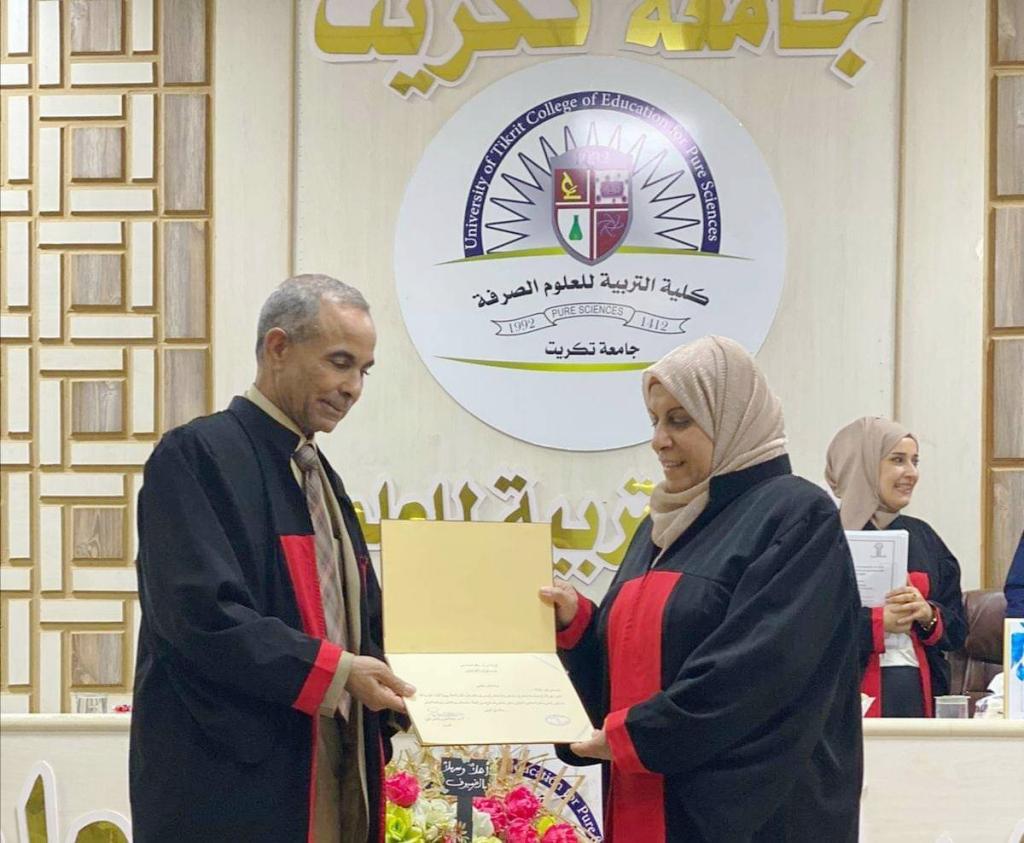 تدريسية من كليتنا تشارك في لجنة مناقشة رسالة ماجستير في كلية التربية للعلوم الصرفة / جامعة تكريت