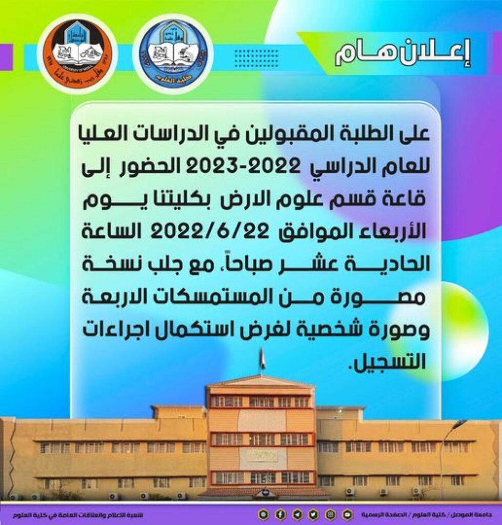 إعلان للطلبة المقبولين في الدراسات العليا في كليتنا