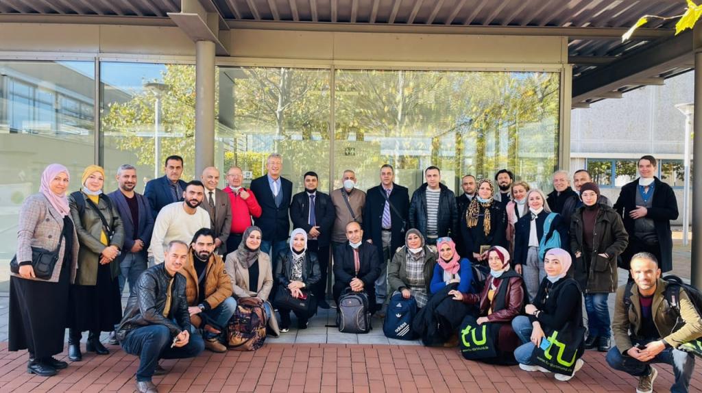تم افتتاح الكورس المكثف بعنوان ( اعادة تدوير البوليمرات ومواد أخرى ) في جامعة TU دورتموند الألمانية شارك فيه ( 13 ) تدريسي في اختصاصات مختلفة من كلية العلوم في جامعة الموصل / قسم الكيمياء وللفترة من 23 – 31 تشرين الأول 2021 وقد تضمن حفل الافتتاح القاء كلمات من الجانب الألماني والعراقي وكلمات ترحيب للطرفين وقد قام الجانب العراقي بتقديم لوحة تشكيلية رسمت بأنامل الشابة الخريجة سارة محمد تضمن حضارة الموصل العريقة وما قدمته للإنسانية من علم وثقافة كما قدمت الطالبة ضحى حازم تصميماً فنياً يعكس التعاون بين جامعة TU دورتموند الألمانية وجامعة الموصل وجامعة كراز النمساوية و أختتم حفل اليوم بمحاضرة القيت من قبل أحد أساتذة جامعة دورتموند تتضمن استخدام البوليمرات بوصفها عوامل مساعدة في تحضير الأدوية .
