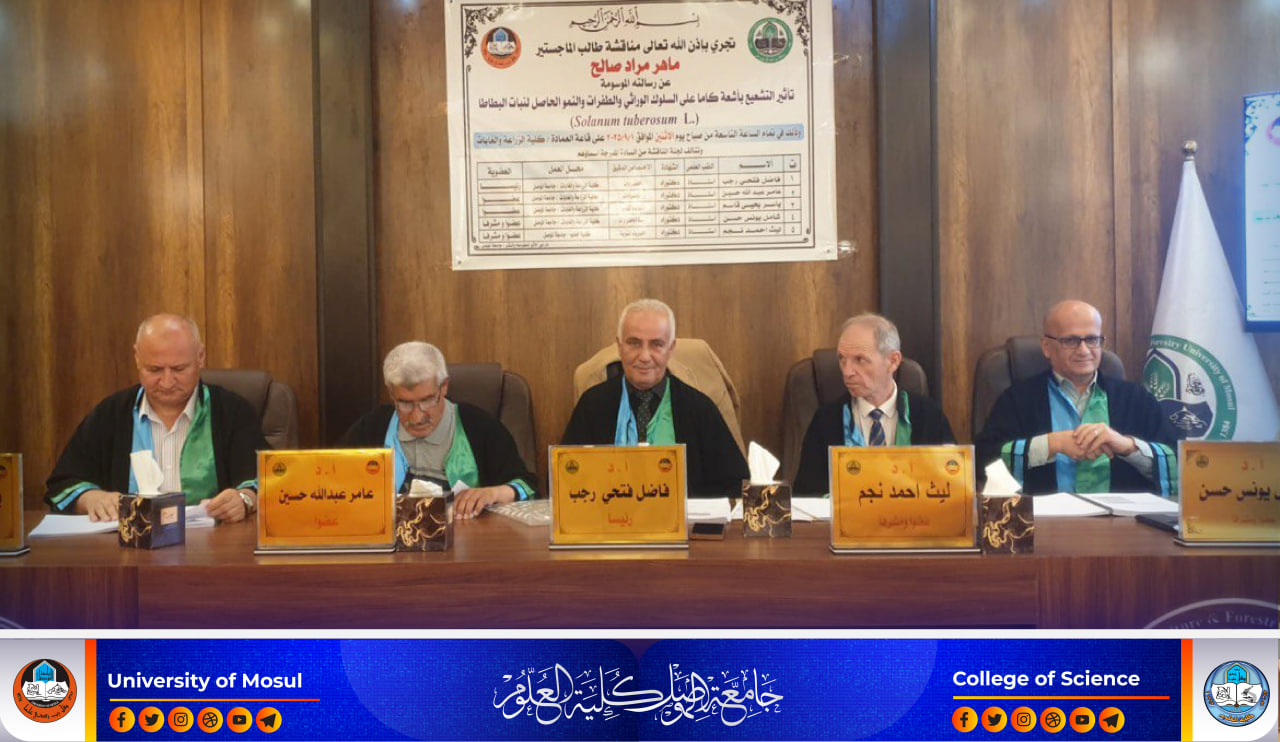 شارك الأستاذ الدكتور ليث أحمد نجم من قسم الفيزياء في كلية العلوم بجامعة الموصل، في عضوية لجنة مناقشة رسالة الماجستير للطالب ماهر مراد صالح، في كلية الزراعة ، وذلك يوم الخميس الموافق 28 آب 2025.