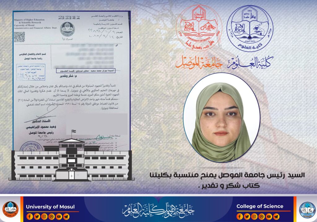 وتؤكد كلية العلوم اعتزازها بإنجازات تدريسييها، مع أصدق تمنياتنا لكوادرنا التعليمية بمزيد من التميز والعطاء في مسيرتهم البحثية والعلمية.