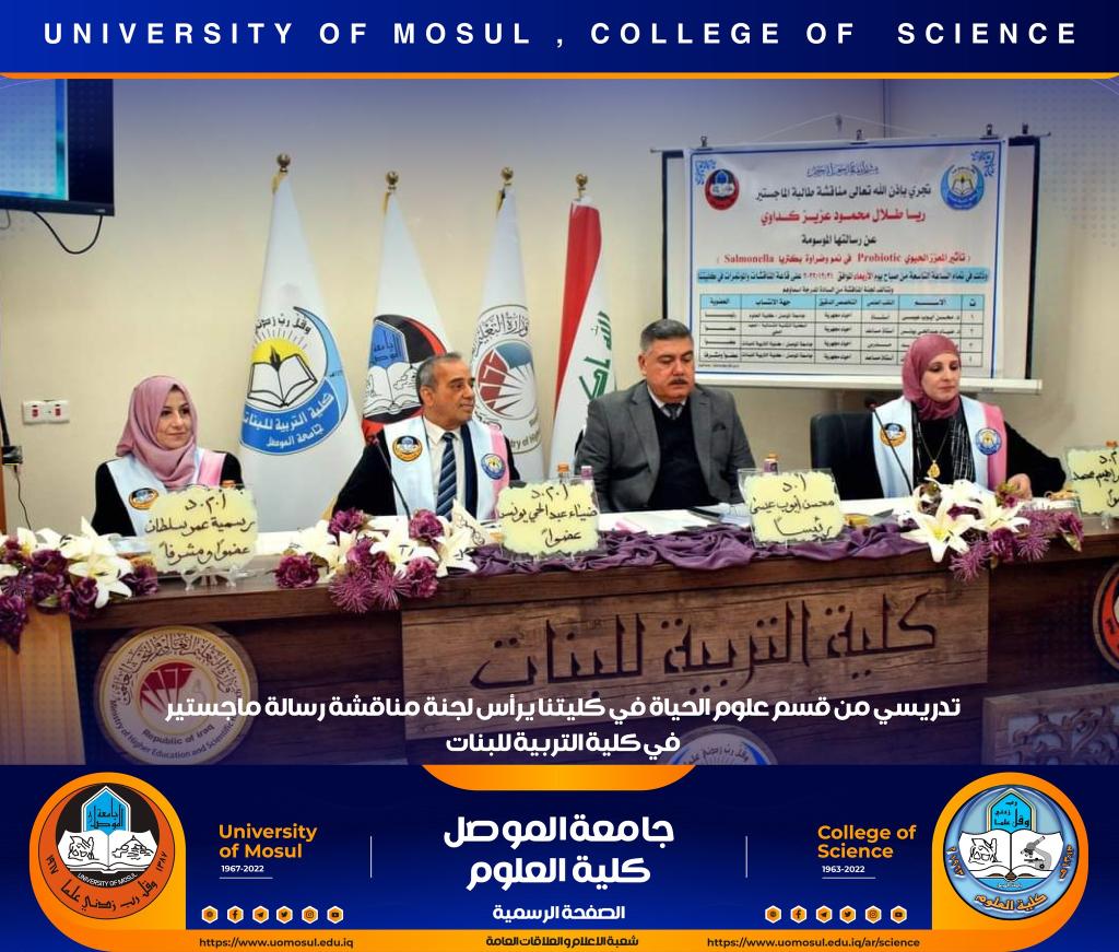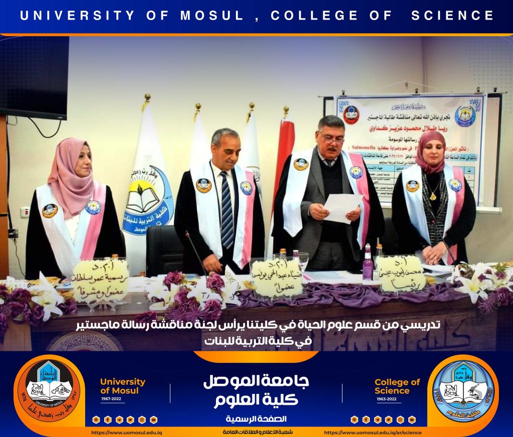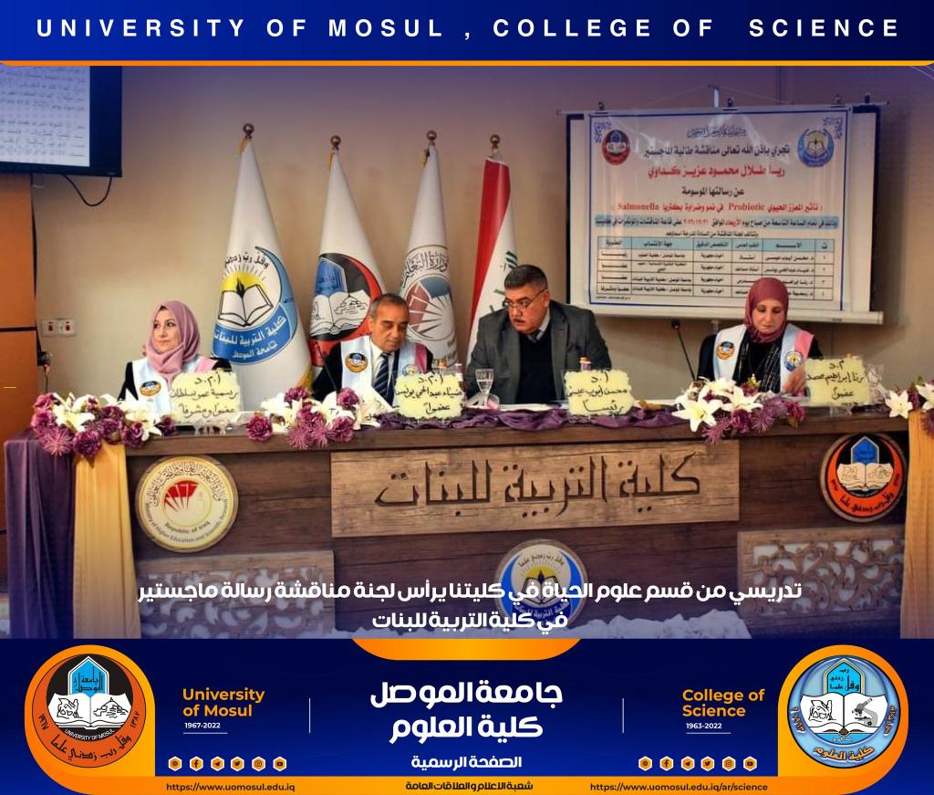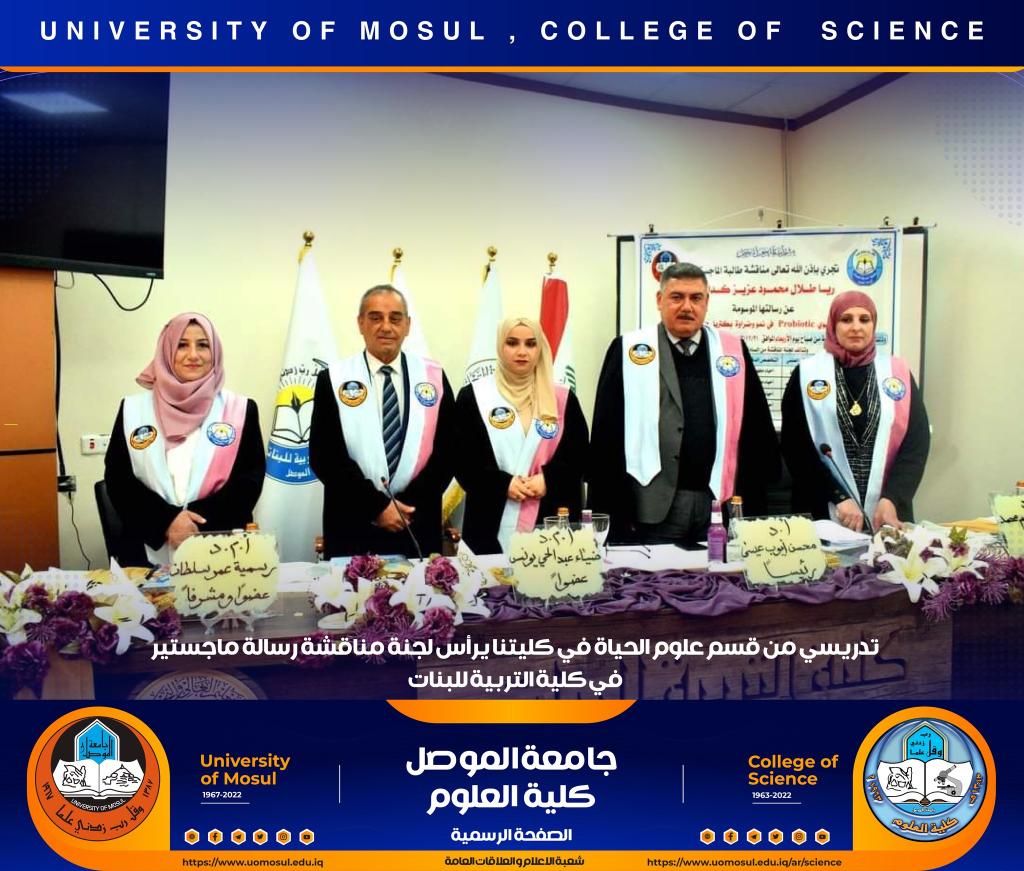 تدريسي من كليتنا يرأس لجنة مناقشة رسالة ماجستير في كلية التربية للبنات