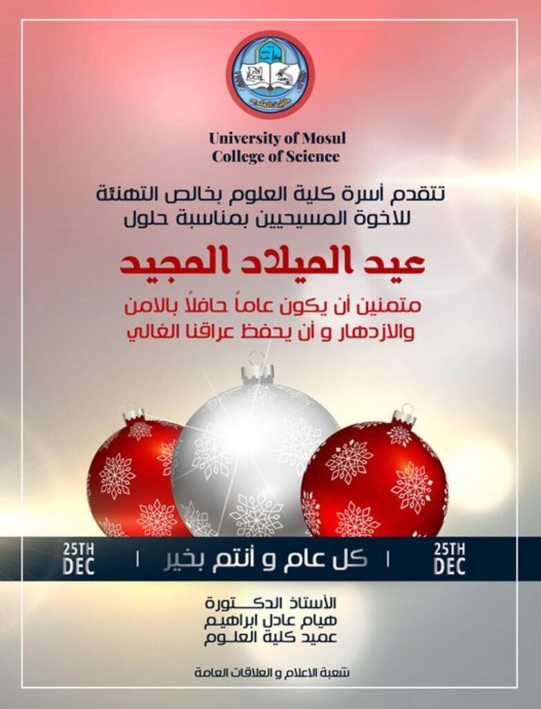 ترأس الأستاذ الدكتور محسن أيوب عيسى التدريسي بقسم علوم الحياة في كليتنا لجنة مناقشة رسالة الماجستير للطالبة (ريا طلال محمود كداوي) من كلية التربية للبنات الموسومة :تأثير المعزز الحيوي Probiotic في نمو وضراوة بكتيريا Salmonellaجرت أحداث المناقشة صباح يوم الأربعاء الموافق 21 كانون الأول 2022 في رحاب قاعة المناقشات والمؤتمرات في عمادة الكلية.يجدر الذكر أن الطالبة حاصلة على شهادة البكالوريوس من فرع الأحياء المجهرية في كليتنا.شعبة الإعلام والعلاقات العامةالسبت 24 كانون الأول 2022