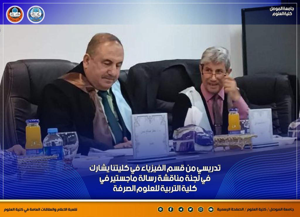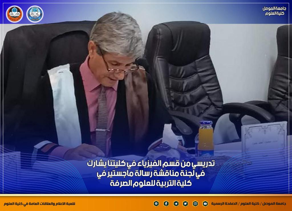 تدريسي من كليتنا يشارك في لجنة مناقشة رسالة ماجستير في كلية التربية للعلوم الصرفة