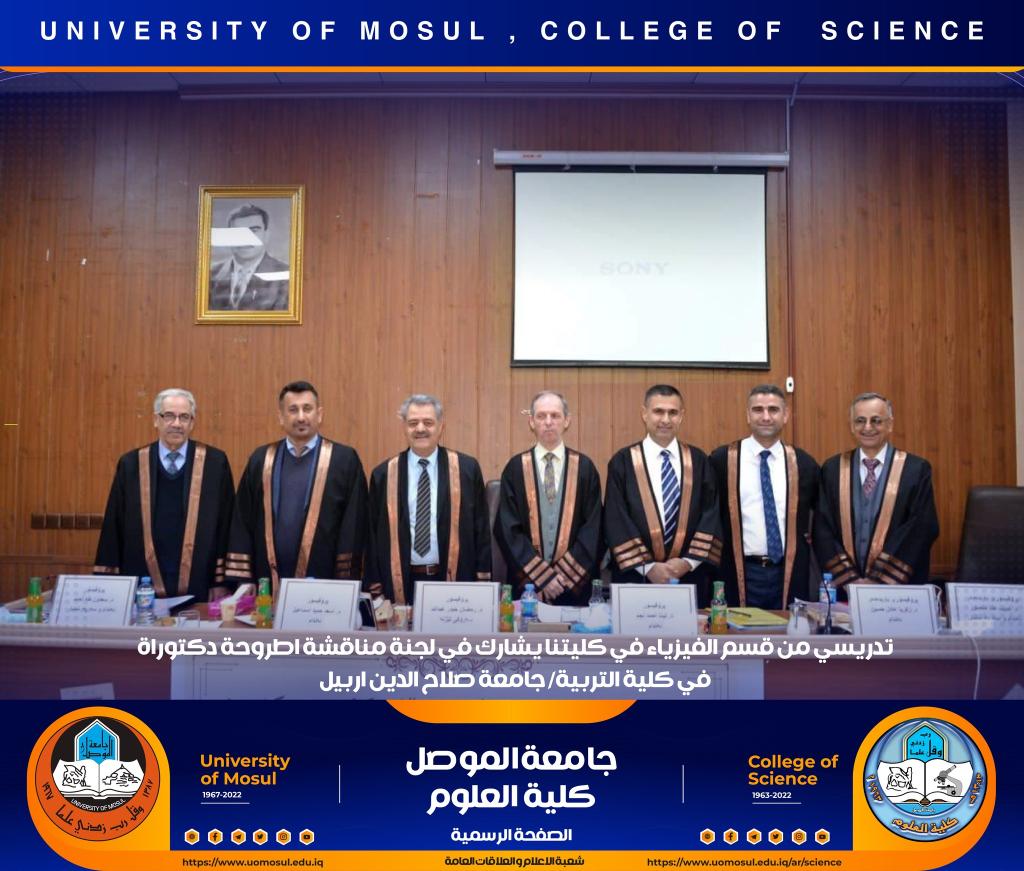 تدريسي من كليتنا يشارك في لجنة مناقشة اطروحة دكتوراه في جامعة صلاح الدين-أربيل