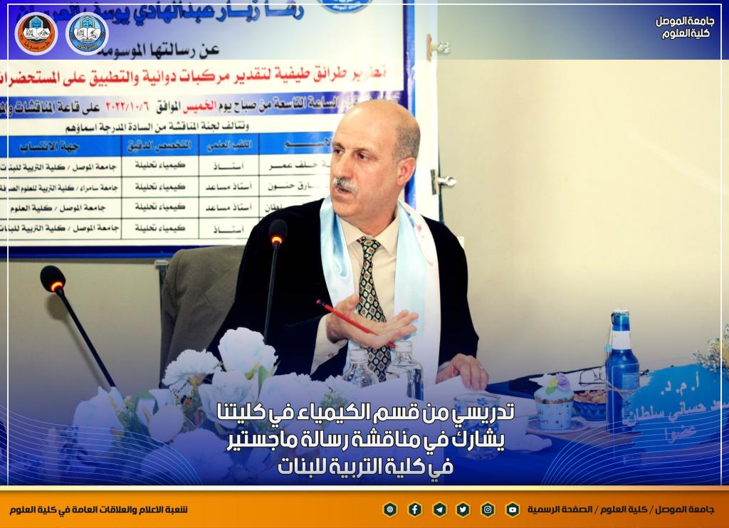 تدريسي من كليتنا يشارك في لجنة مناقشة رسالة ماجستير في كلية التربية للبنات