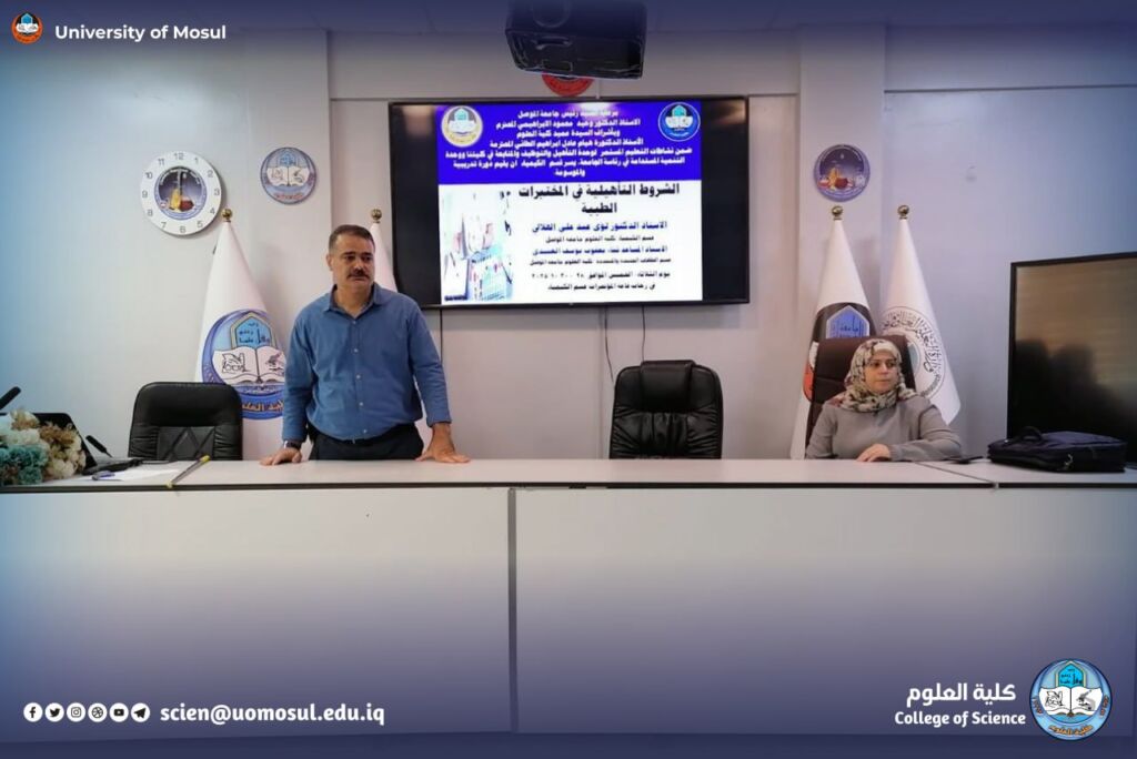 دورةٌ علميَّـةٌ في قسـمِ الكيميـاءِ بعنـوان (الشُّـروط التأهيلِيَّـةِ في المُختبـراتِ الطِّبِّيَّــةِ).