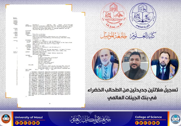 في بادرةٍ علميَّةٍ تُضاف إلى إنجازات كُليَّة العلوم، قامت كلٌّ من الأستاذ الدكتورة إسراء غانم السماك، وطالبة الدكتوراه هدى وليد هادي، التدريسيتان في قسم علوم الحياة، بتسجيل 25 سُلالة بكتيريَّة جديدة في المركز الوطني لمعلومات التقانة الحيويَّة NCBI.