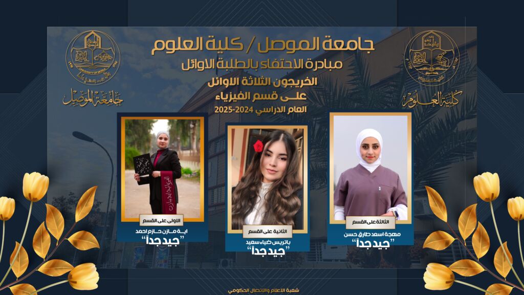 وبهذه المناسبة، عبّرت السيدة عميد كلية العلوم الأستاذ الدكتورة هيام عادل إبراهيم الطائي المحترمة عن بالغ فخرها واعتزازها بطلبة القسم، مؤكدةً أن هذا التفوق هو ثمرة الإصرار والعمل المتواصل، وأن طلبتنا هم النواة الحقيقية لمستقبل علمي واعد يليق باسم جامعة الموصل.