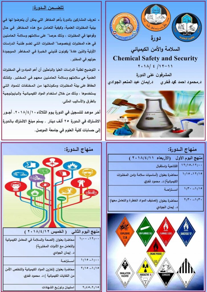 دورة في قسم الفيزياء الحياتية في كلية العلوم حول السلامة والامن الكيميائي