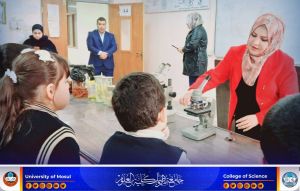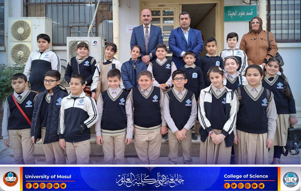 تجسيداً لمبدأ التعاون المستمر بين جامعة الموصل ومديرية تربية نينوى ضمن النهج الذي وضعته الجامعة استناداً الى توجيهات السيد رئيس جامعة الموصل الأستاذ الدكتور قصي كمال الدين الأحمدي و بإشراف السيدة عميد كلية العلوم الأستاذ الدكتورة هيام عادل إبراهيم استقبل قسم علوم الحياة يوم الأحد الموافق 26 تشرين الثاني 2023 تلاميذ مدرسة الارقم الابتدائية الأهلية المختلطة ، وشملت الزيارة الاطلاع على بعض المختبرات العلمية في القسم منها مختبر اللافقريات حيث تم التطرق إلى المجهر الضوئي وأنواعه ومكوناته ومراحل تطوره وشرح موجز عن النماذج المحفوظة من اللافقريات وطرق حفظها والمحاليل المستخدمة في الحفظ وكذلك مختبر الحشرات ، حيث تم التطرق إلى دور الحشرات في المكافحة الحيوية وهي استخدام الحشرات للقضاء على الحشرات الأخرى كتغذي فرس النبي على الجراد والخنافس وغيرها وكذلك شرح أهمية الحشرات في الحفاظ على التوازن الطبيعي حيت تعد غذاء للطيور والأسماك والقنافذ والضفادع والعقارب والأفاعي والعناكب .