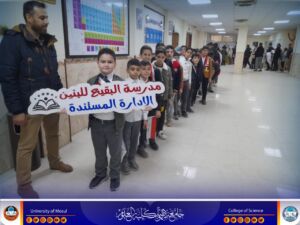 تجسيداً لمبدأ التعاون المستمر بين جامعة الموصل ومديرية تربية نينوى ضمن النهج الذي وضعته الجامعة وبرعاية السيدة عميد كلية العلوم الأستاذ الدكتورة هيام عادل إبراهيم المحترمة وإشراف السيد رئيس قسم الكيمياء الأستاذ الدكتور سالم جاسم محمد المحترم .