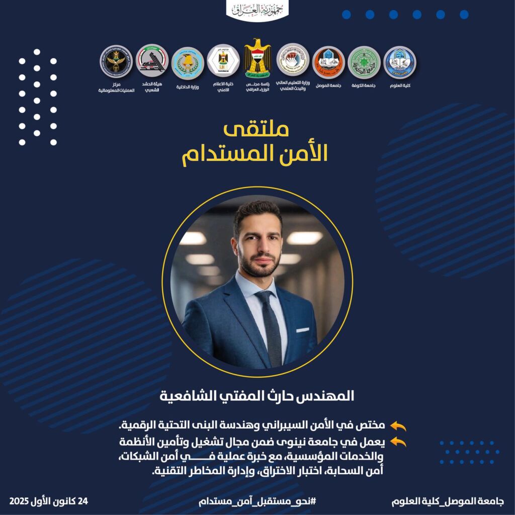 ندعو الأكاديميين، الباحثين، والمهتمين بالأمن السيبراني للانضمام إلى هذه الجلسة العلمية التخصصية لتعزيز الوعي الأمني الرقمي.